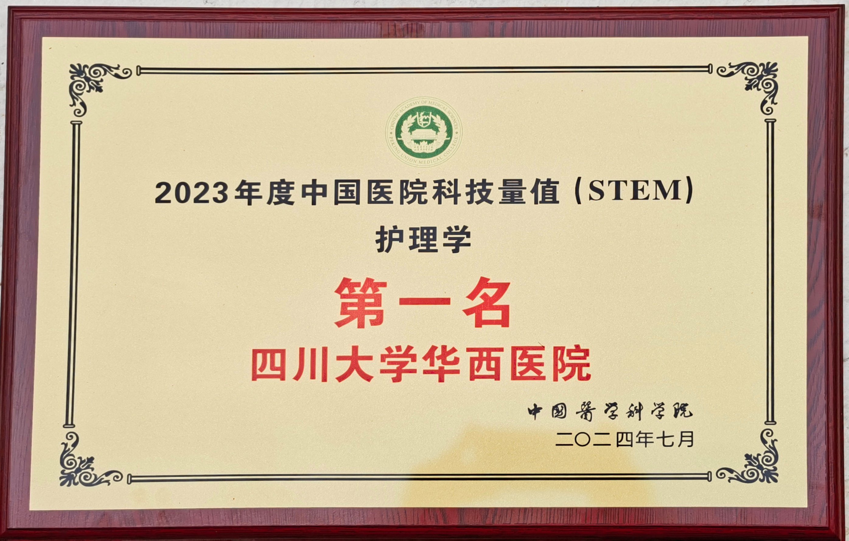 On July 19, 2024, 2023 China Medical College/Hospital Science and Technology Evaluation Metrics (STEM) and 5-year Accumulative Science and Technology Evaluation Metrics(ASTEM) ranking for 2019-2023 were released officially. West China Hospital, Sichuan University has stayed at the top of the overall ranking for consecutive 11 years. Nursing Discipline of our hospital ranked first on 2023 China ...