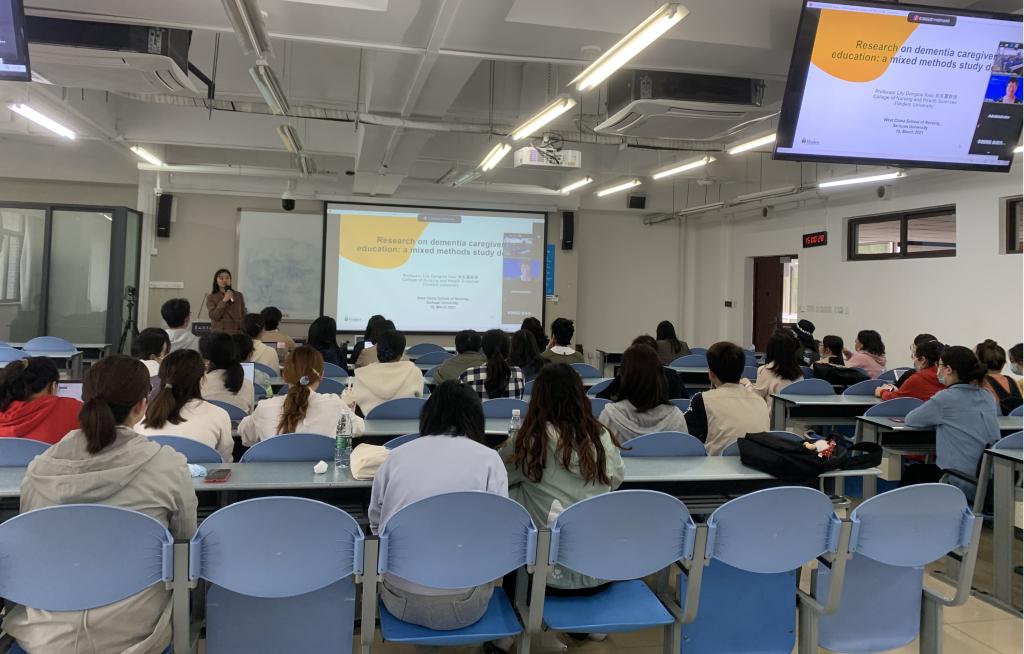 The first speech of the “Enhance Discipline Strength and Promote Nursing Development” series was held on March 18th. Theguest professor, outstanding Alumni, Prof. Xiao Dongxia from the College of Nursing & Health Sciences, Flinders University in Australia, gave us a wonderful speech titled on “Research on Dementia Caregiver Education: A mixed Methods Study Design”.