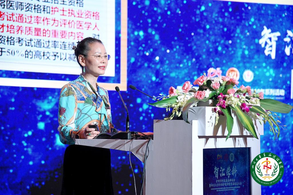 Prof. Shang Shaomei, Chairman of Teaching Advisory Committee on Nursing Higher Education, Ministry of Education, and Dean of School of Nursing, Peking University, first reviewed the historical developments of nursing discipline. Then she put forward that with the increasingly cross-infiltration of medical science and technology, nursing discipline has presented a comprehensive development trend. She hoped that future nursing education will promote the cultivation of innovative talents by scientific research, improve the teaching level in the process of scientific research, develop to a high level and diversified directions, and continuously inject new vitality into the health service.