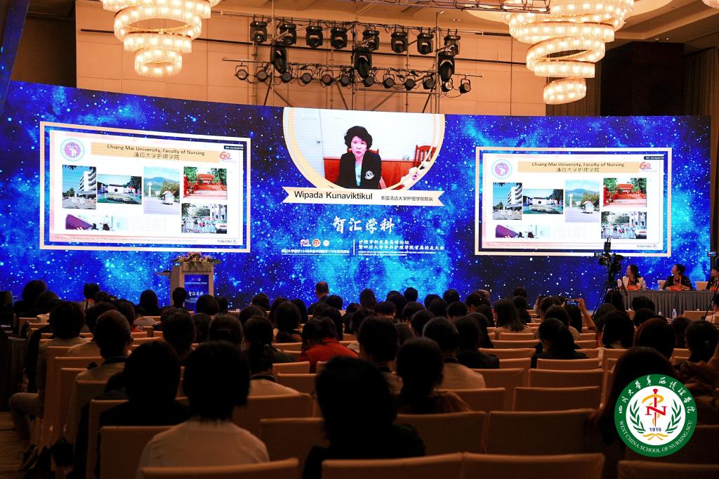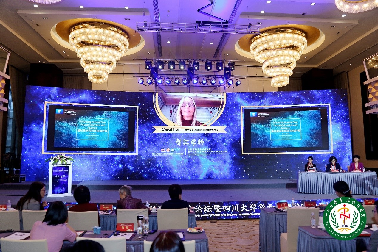 The conference was held by West China School of Nursing. It invited 59 well-known nursing experts from 36 nursing colleges from home and abroad, and more than 300 alumni to participate. Apart from that, more than 500 and 5400 people attended the conference offline and online respectively. The conference began with an impressive video introduction with the themes of “Unfading, Spreading, Cultivating, Integrating”.