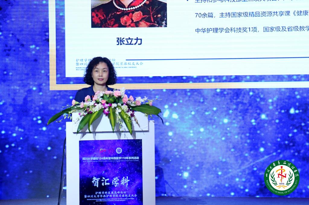 Prof. Li Weimin, Dean of West China School of Medicine/School of Nursing & President of West China Hospital, Sichuan University, made a welcome speech for all the attending guests, experts and alumni. He said that the West China School of Nursing, holding the spirit of loyalty, persistence, simplicity and dedication, has trained countless outstanding nursing leaders, and achieved good results in nursing education, scientific research and international cooperation. Especially during the pandemic of the COVID-19, West China School of Nursing has contributed strength in areas of medical care, education, research to the battle against the pandemic. He emphasized the opportunities and challenges are coexisted for today's nursing discipline, and hoped that all nursing colleagues can work together to overcome difficulties and jointly promote the development of nursing discipline in China. He expressed his best wishes to Chinese nursing discipline to become world first-class soon.