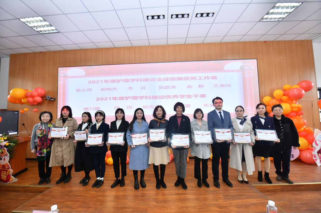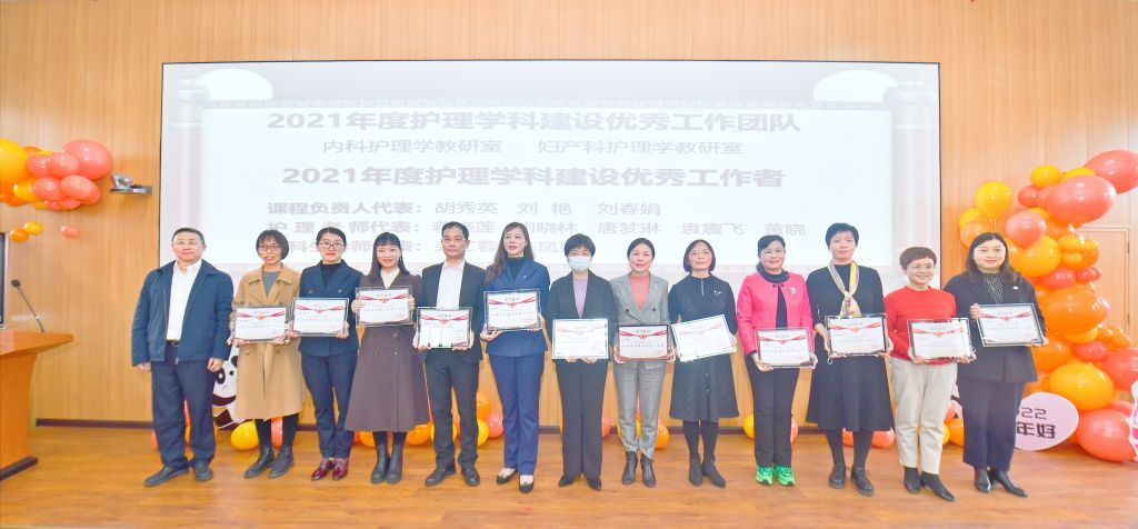 Prof. LIU Lunxu and Prof. WANG Kunjie presented prizes for 2021 outstanding contributors in nursing discipline construction.