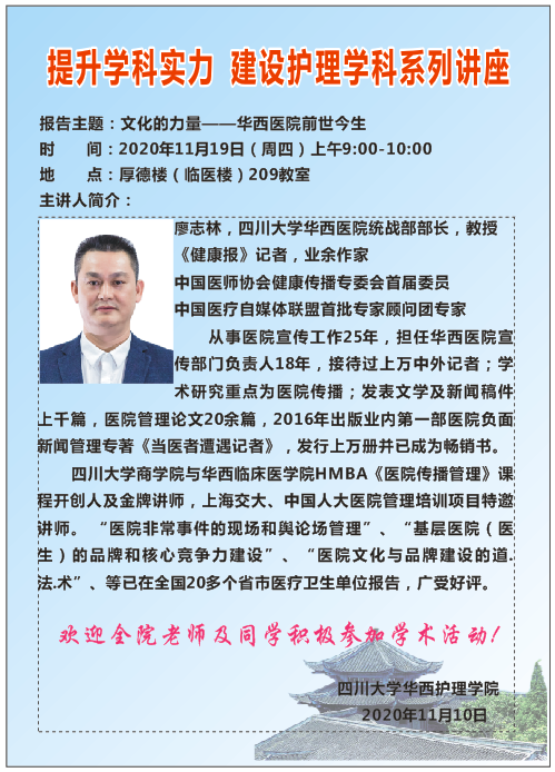 2020年11月19日讲座预告-《文化的力量-华西医院前世今生》、...