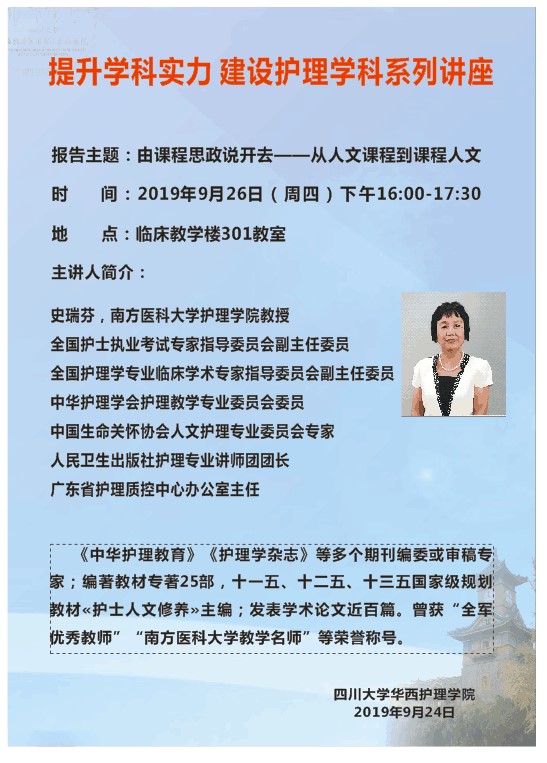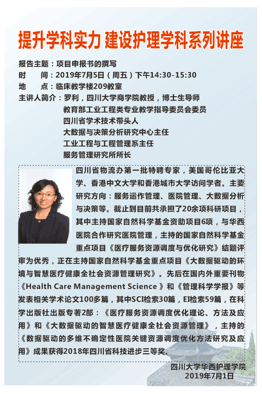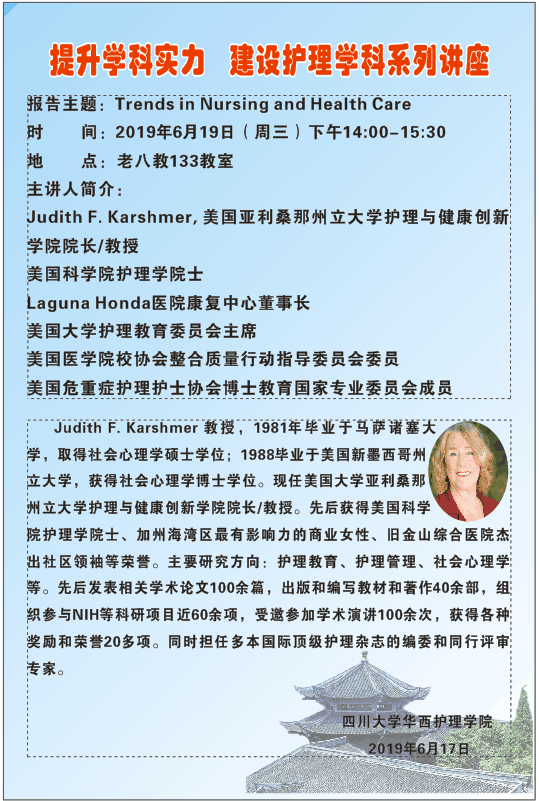 2019年6月19日讲座预告——“Trends in Nursing and Health C...