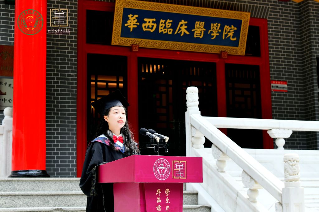 2022届本科生王傲琪同学作为本科毕业生代表发言,她向辛勤培育的老师们表示最衷心的感谢和最崇高的敬意,表示将继续带着华西人自强不息的精神,怀揣着医学梦想,实现人生理想。