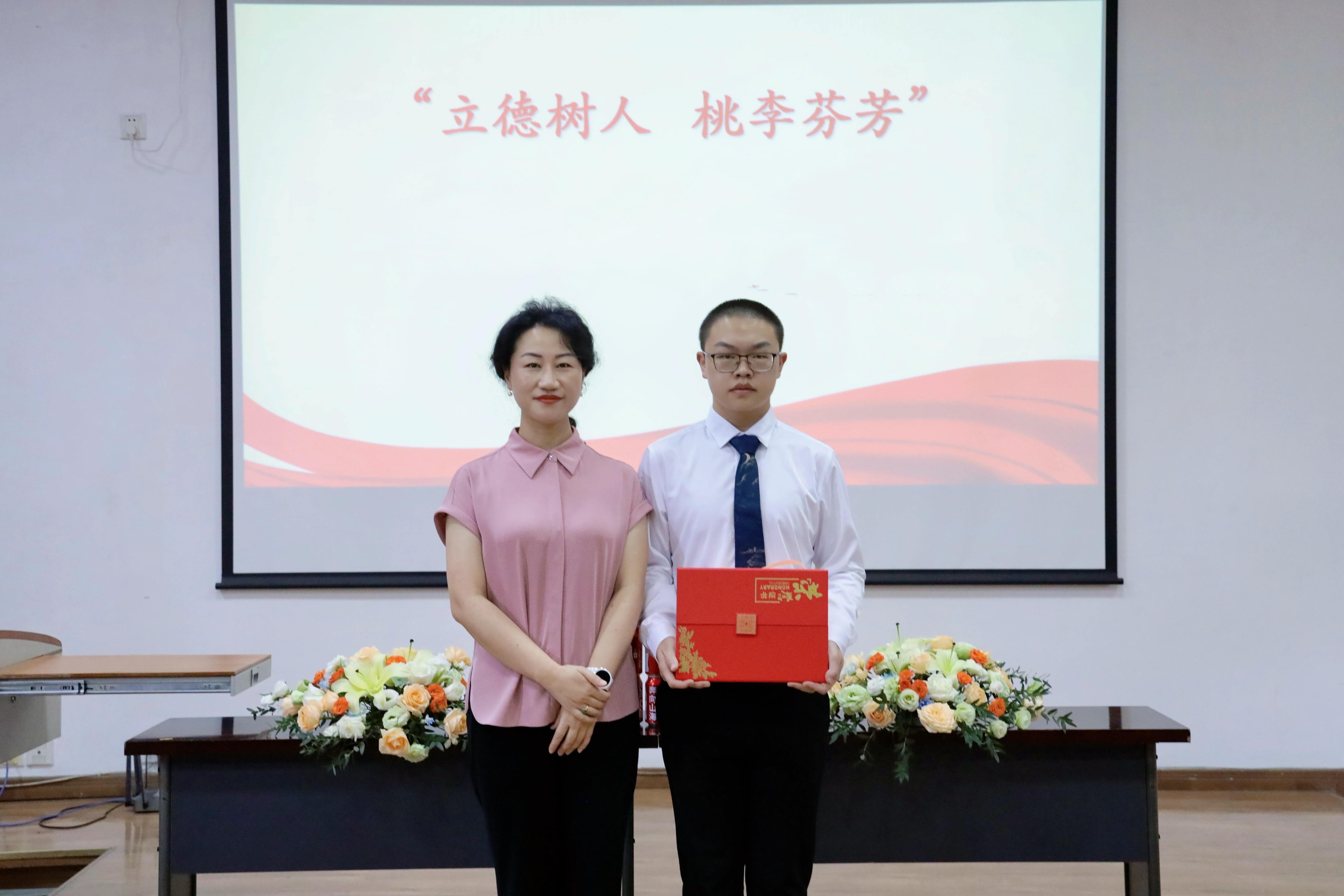 李卡院长为获得“我遇到的好老师”征文比赛一等奖的唐宇同学颁奖