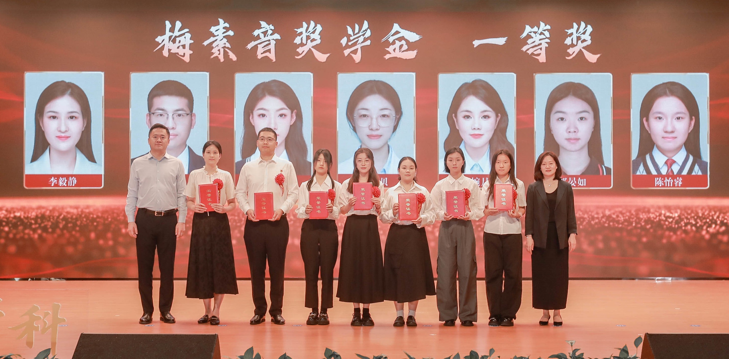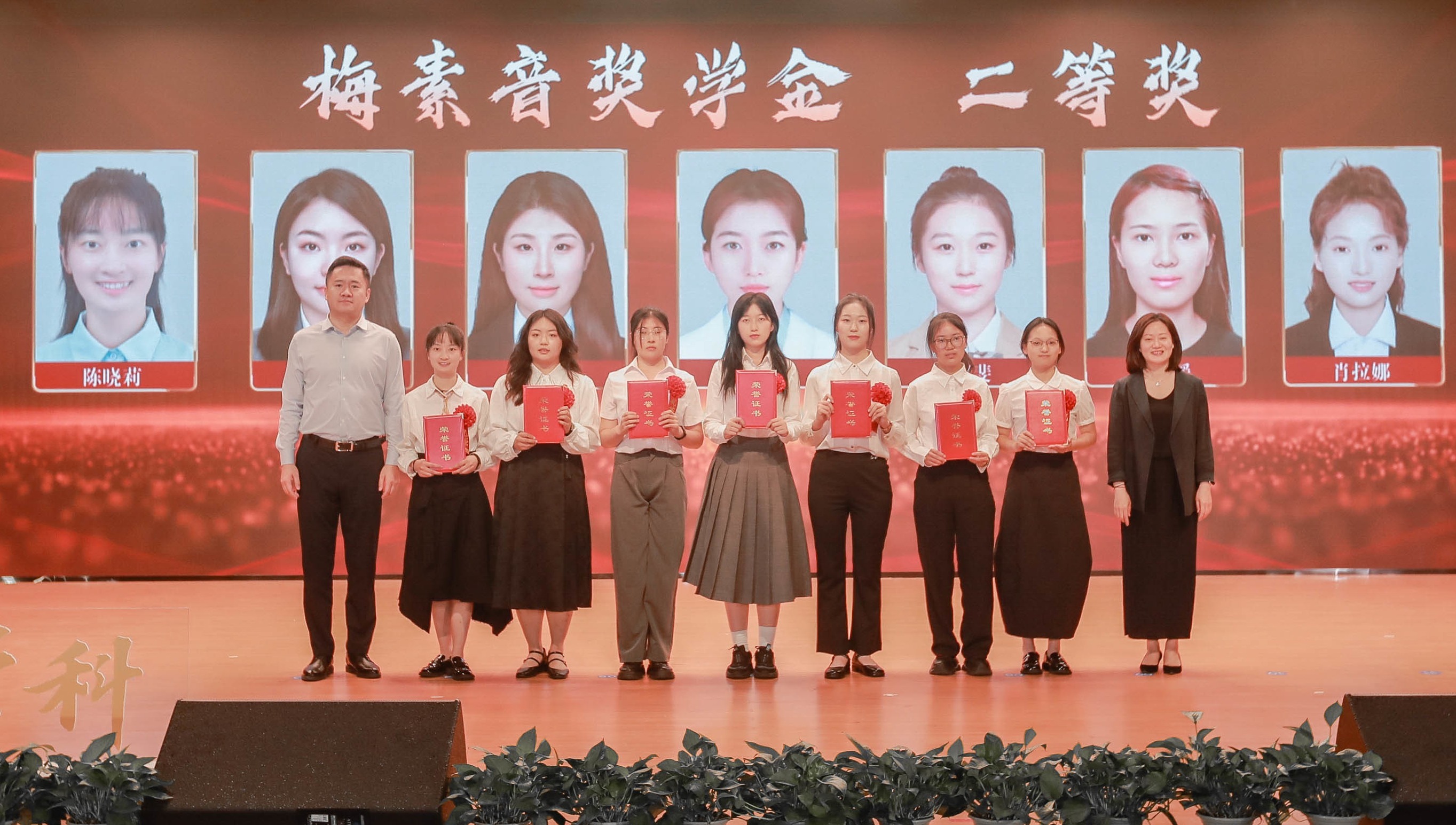 金年会诚信信誉至上财务处高志华处长、党政办李鲲副主任为获得“梅素音奖学金”的学生颁奖
