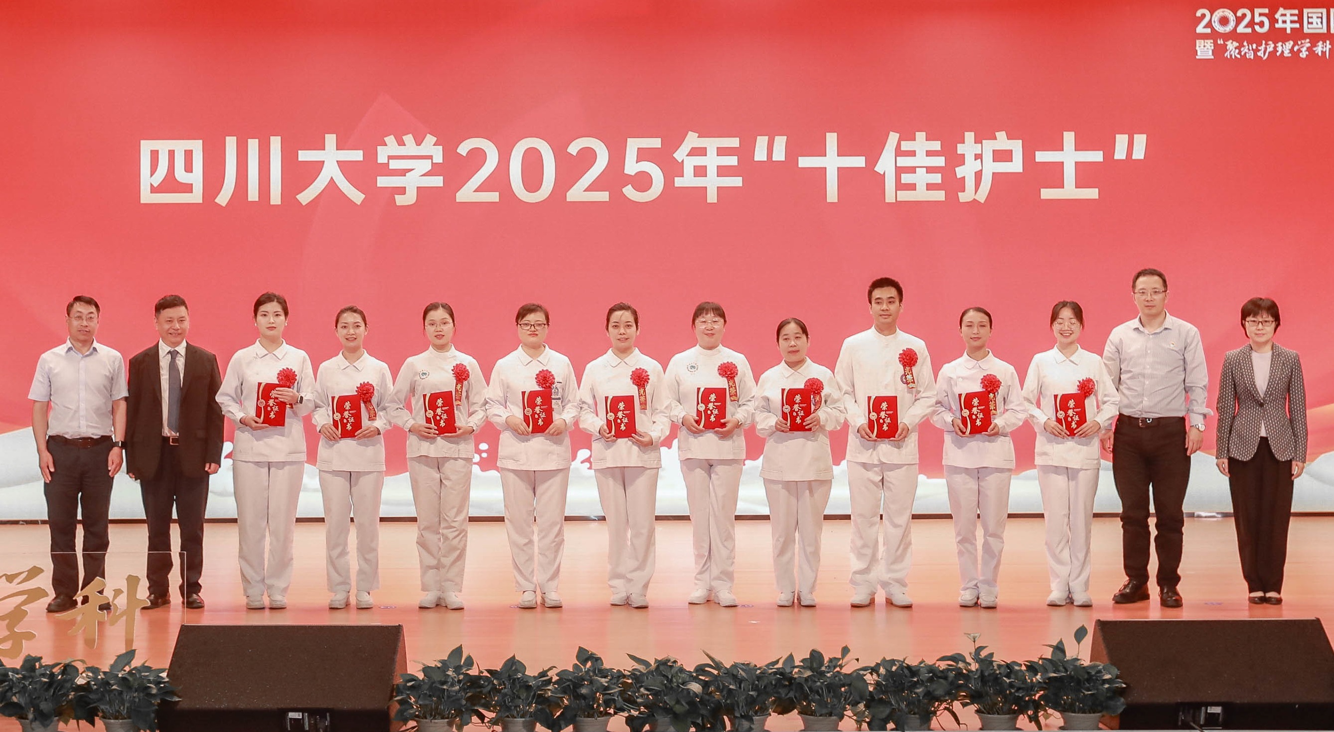 金年会诚信信誉至上工会袁斌常务副主席、华西第二医院牛晓宇副院长、华西口腔医学院(华西口腔医院)祝颂松副院长、华西公共卫生学院(华西第四医院)沈江副院长为金年会诚信信誉至上2025年十佳护士颁奖
