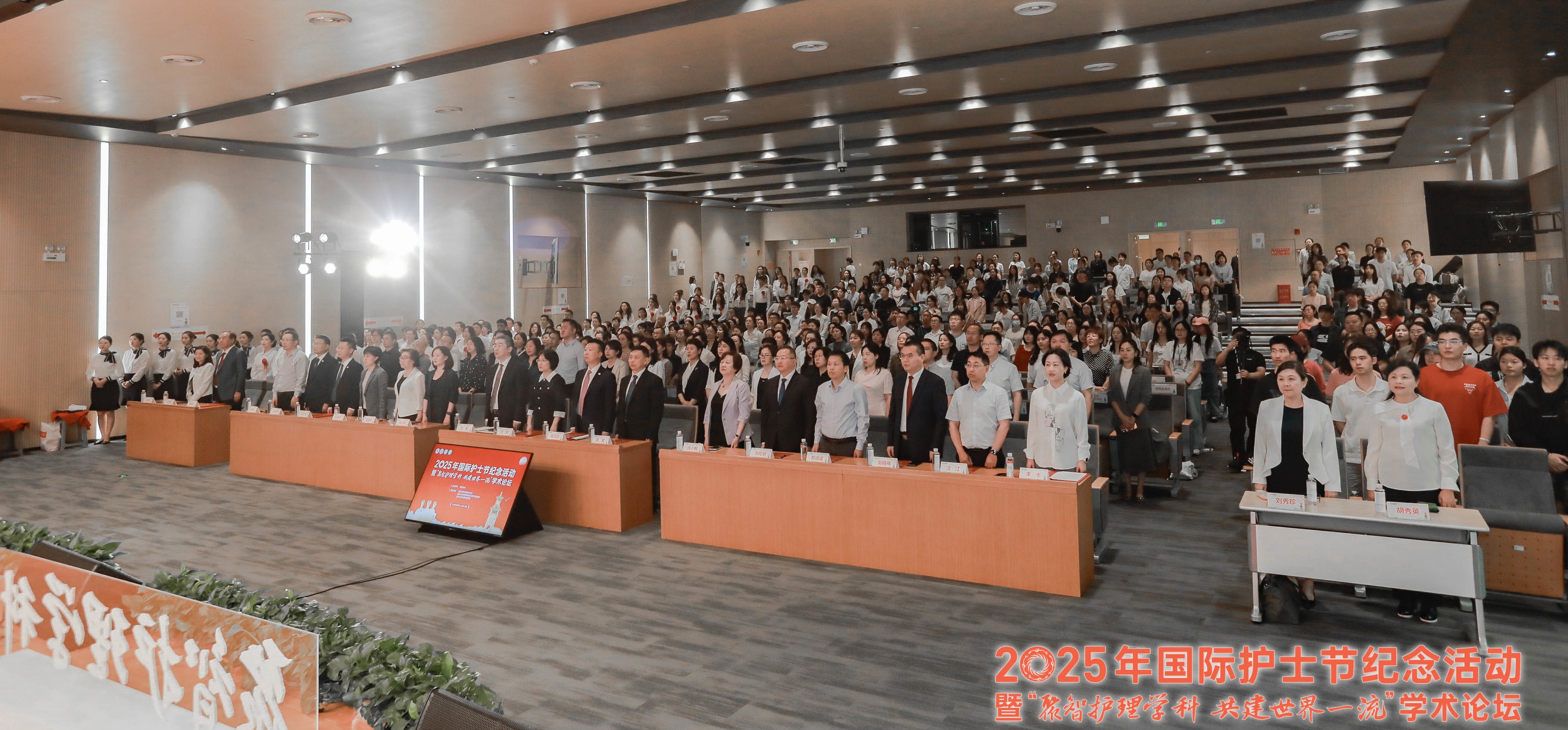 2025年国际护士节纪念活动暨“聚智护理学科 共建世界一流”学术论坛在金年会诚信信誉至上华西校区厚德楼举行。金年会诚信信誉至上叶玲副校长及相关职能部处,金年会诚信信誉至上华西临床医学院(华西医院)党委程永忠书记、学校各附属医院院领导及相关职能部处莅临本次活动。本次活动特别邀请到北京大学、新加坡国立大学、香港大学、香港中文大学的世界前列护理学科带头人、院校长及学者代表,以及护理师生代表共计500余人参加活动。此次活动在庄严的中华人民共和国国歌《义勇军进行曲》中拉开帷幕。