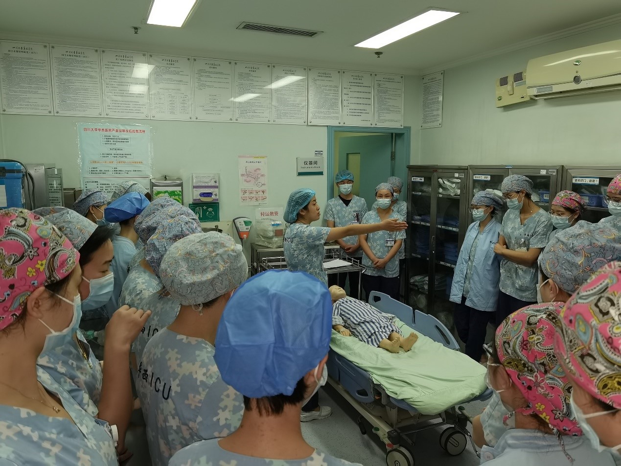 进入科室的第一天,我们的护士长唐梦琳老师及总带教杨翠老师为我们介绍了小儿ICU的发展历史:她成立于2010年5月6日,主要收治心脏外科、小儿外科、神经外科、耳鼻喉科、烧伤科、眼科等压专业的重症患者。她曾成功完成了四川首例胸腹联体女婴分离、小儿肝移植、心脏移植等疑难病例的术后监护;与加拿大多伦多Sickkids医院建立了长期的合作关系,每年派遣医生和护士前往进修和学习;开展多个持续质量改进的品管圈多次获奖;在科研方面也发表SCI和核心论文数篇,申请各级各类课题多项……十一年来,她培育了一大批优秀的护理人才。