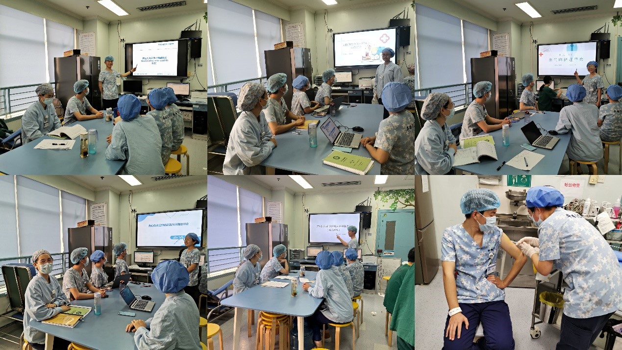 但令我们没想到的是,这一周的“看听内容”竟如此地丰富。从消防安全到职业暴露的预防与处置,从皮下注射示范到PICC的维护操作,从PICC可视化置管操作到漂浮导管技术,从法洛四联症到危重患儿的识别与处理……尽管没有在床旁实操,但在科室里的每分每秒我们都很珍惜。满满当当的课程,让我们在第一周里充实地度过每一天,在缓解进入新环境的焦虑的同时,为进入儿科护理学中小儿ICU的实践学习做好充分准备,从理论层面让我们更为深入的学习到将要进行的操作及护理的患儿病种,为我们接下来的实习打下坚实的基础。