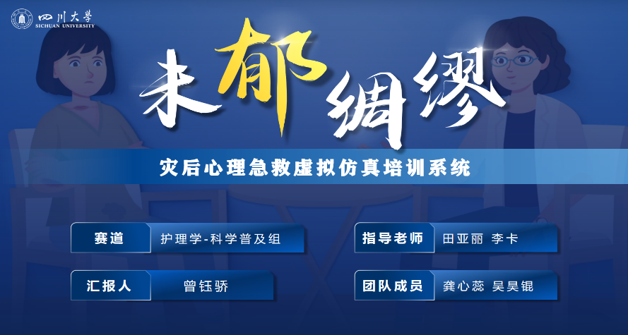 由我院田亚丽副教授、李卡教授作为指导教师,22级护理学与管理学双学士学位本科生曾钰骄为负责人,护理学院本科生龚心蕊、医学技术学院本科生吴昊锟2位同学参与的项目《未郁绸缪——灾后心理急救虚拟仿真培训系统》,获医学仿真应用赛道护理学方向全国三等奖。