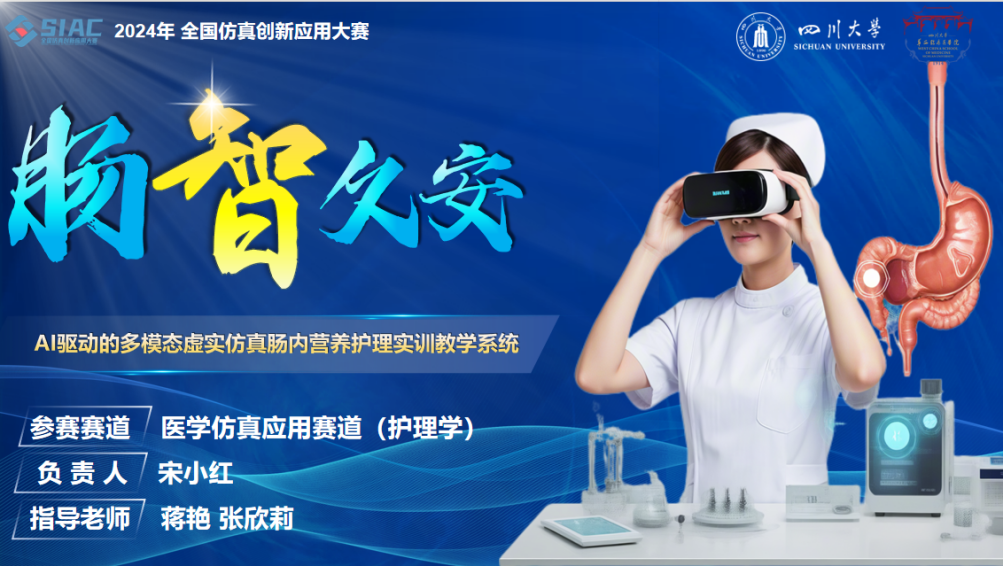 由我院蒋艳教授、商学院张欣莉教授为指导老师,21级护理学与管理学双学士学位本科生宋小红为负责人,护理学院本科生李思敏、但佳龠、龙展艺,商学院本科生殷芳4位成员参与的项目《肠智久安——AI驱动的多模态虚实仿真肠内营养护理实训教学系统》,荣获医学仿真应用赛道护理学方向全国二等奖。