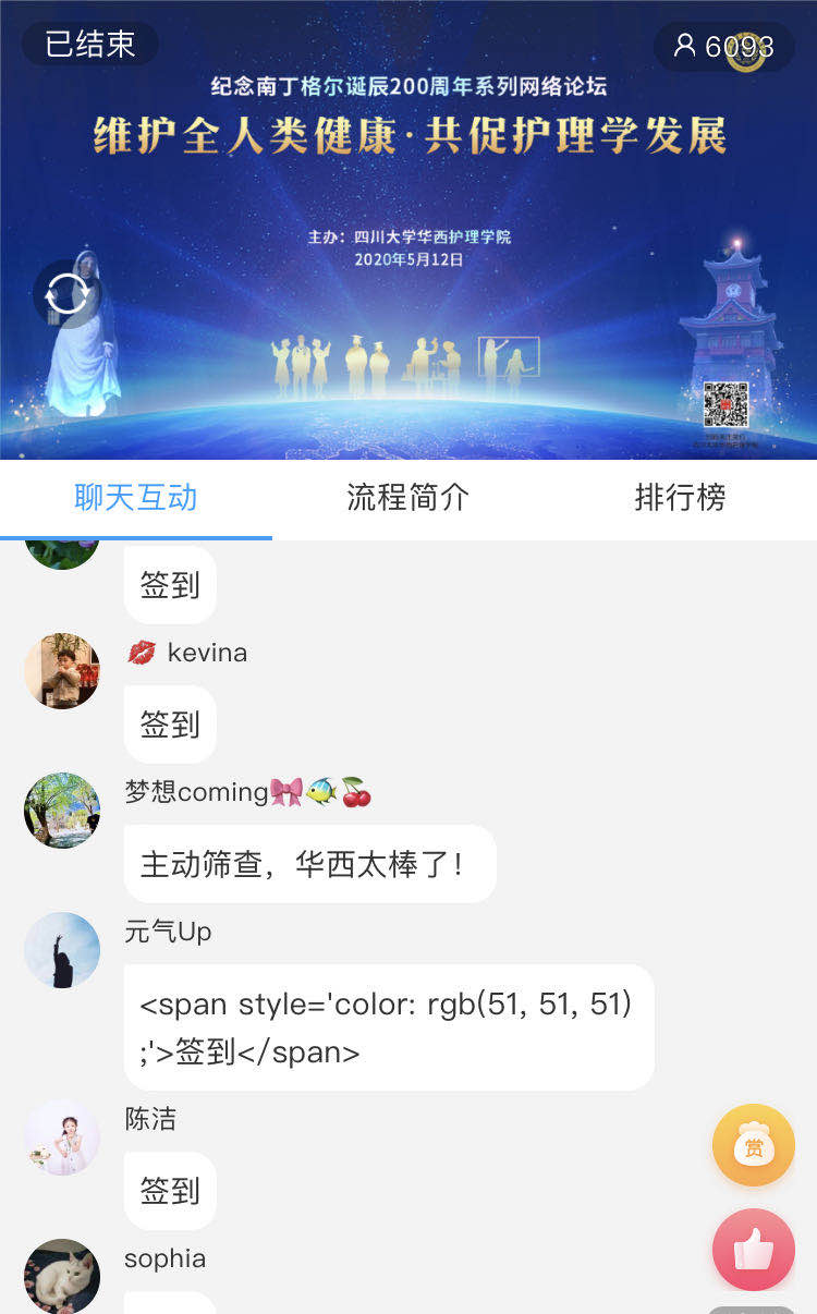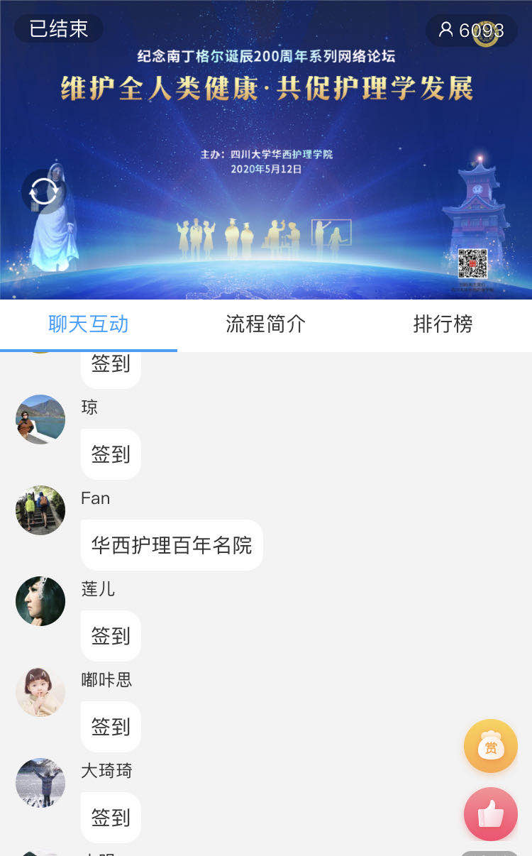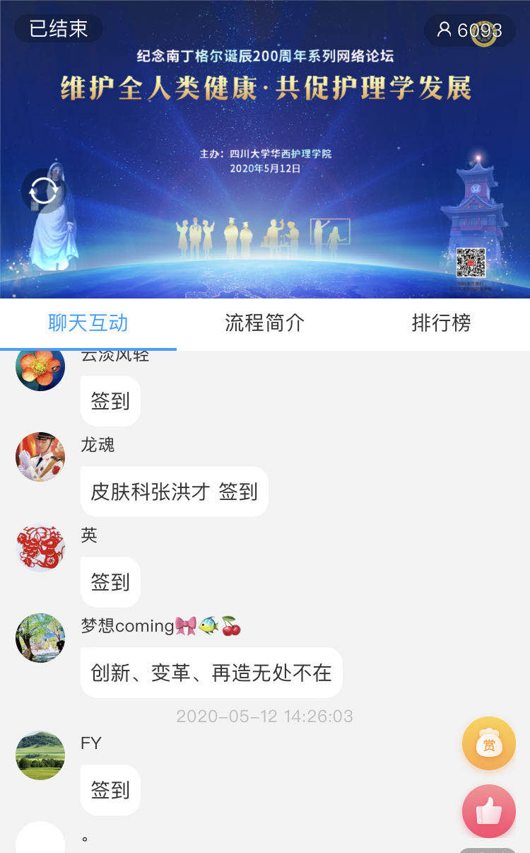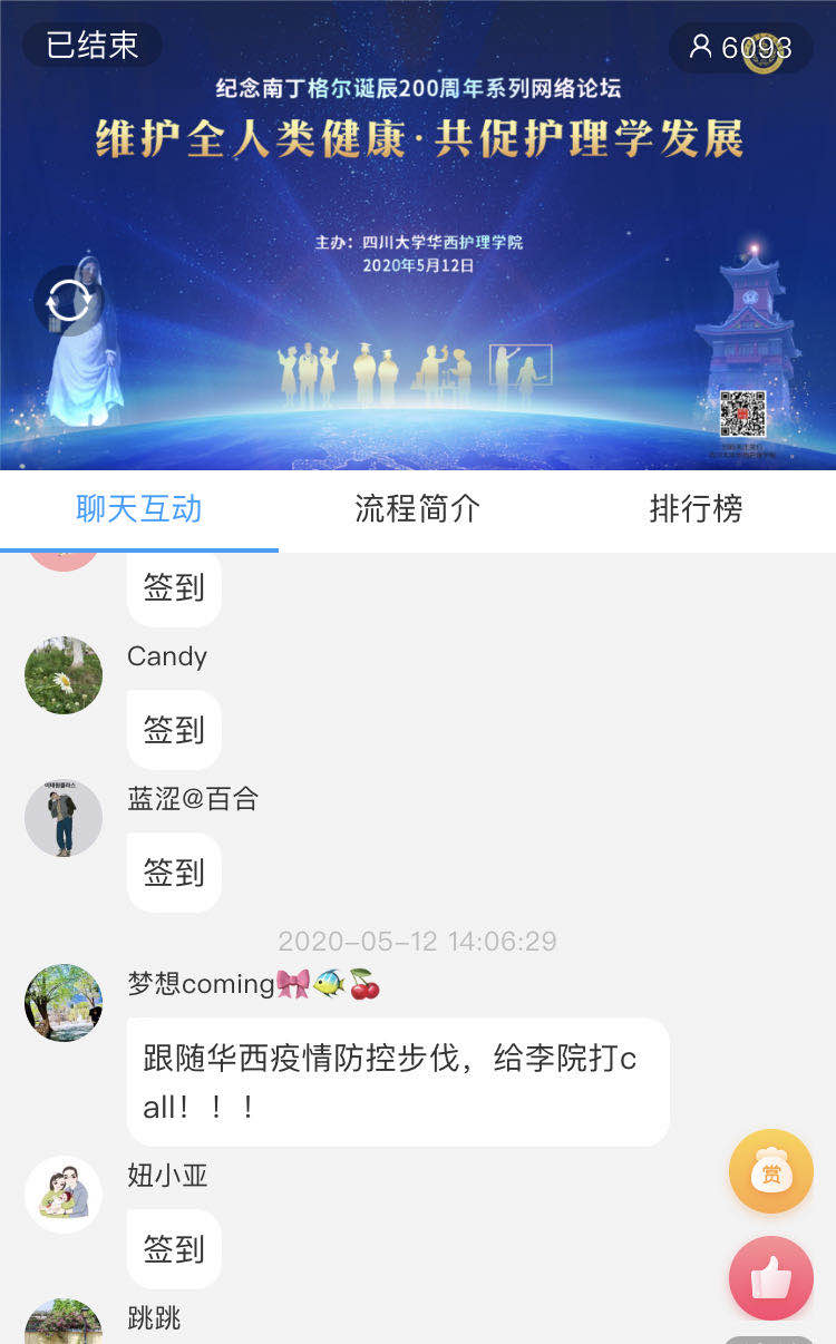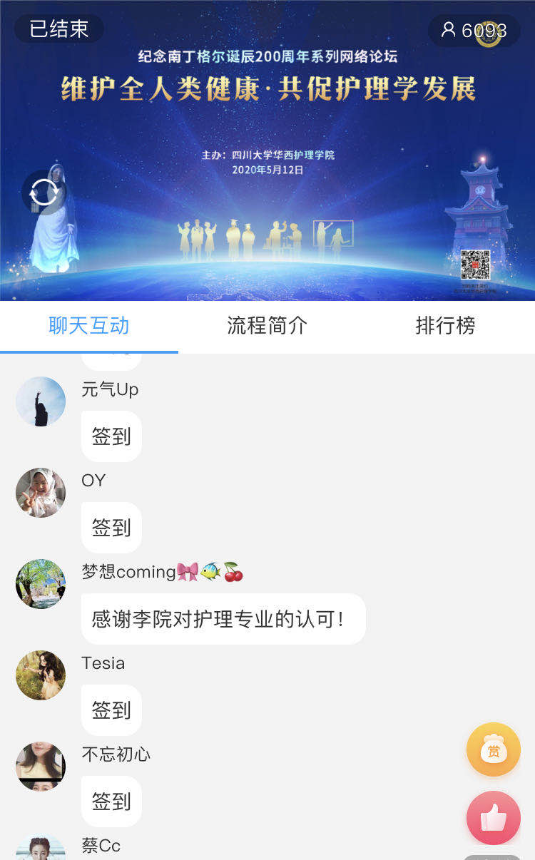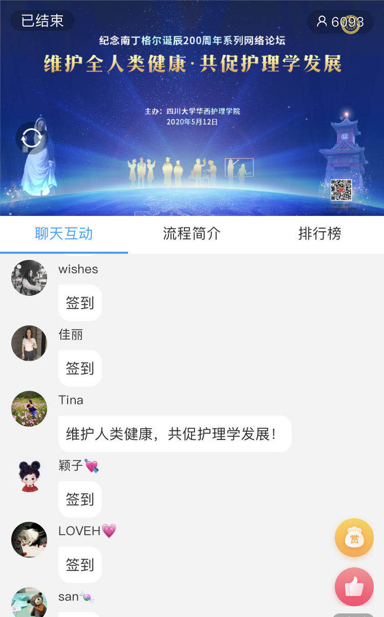 本次网络论坛有六千多人在线收看,覆盖全国23个省,100多所医院、高等院校及医疗服务机构,包括北京、上海、深圳及四川阿坝州、甘孜藏族自治州等偏远地区。与会者在网络平台留言,感谢护理学院搭建的交流平台,感谢学术大咖的精彩分享。