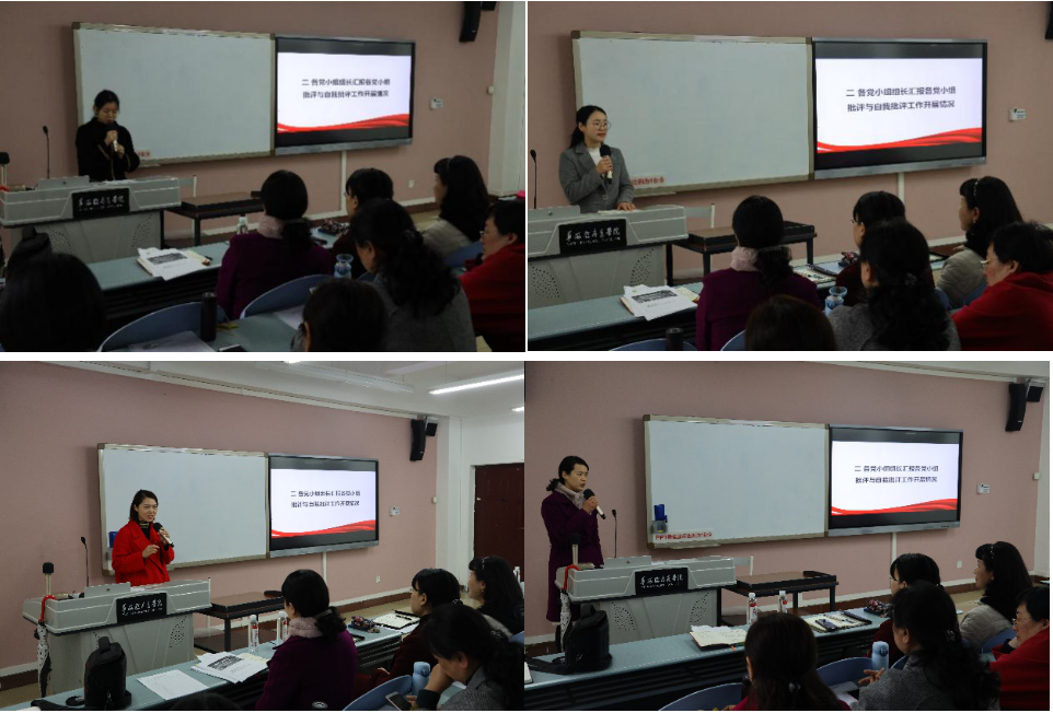随后学生党小组和教师党小组四个党小组的组长汇报了党小组在会前开展批评与自我批评工作开展情况及党小组对党支部工作的建议。