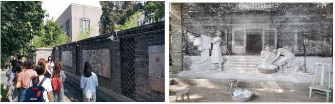 在浮雕中,江姐常常不是浮雕画面中的主要角色,但是她却以一个最普通的川大学子的身份,影响着身边的同学,默默地向他们传递先进思想。