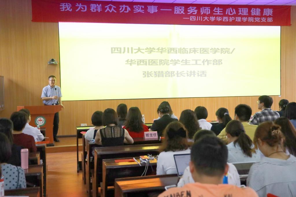 张猎部长在讲话中表示,学院一直关注师生心理健康,学生心理健康工作从教育部到学院都高度重视,学院要从体制和机制思考办法,为广大师生做好心理健康服务,学生工作部对学生健康教育的关注度也越来越高,希望共同努力把所有师生的心理健康工作做的更好,最后预祝活动圆满成功。
