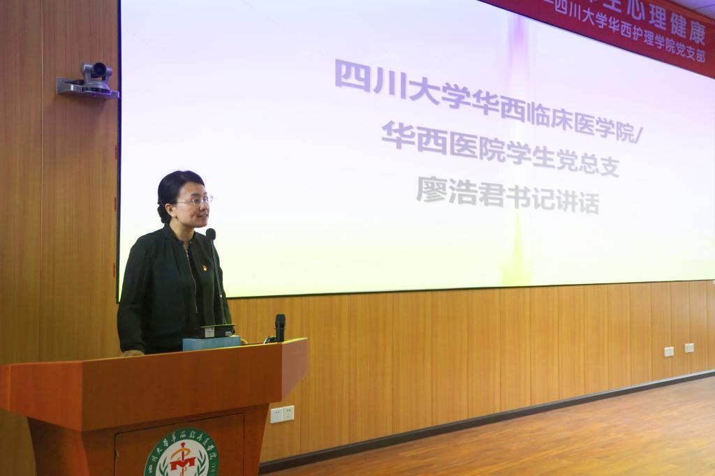 廖浩君书记在讲话中表示,我们党的核心就是为人民服务,一切依靠群众,一切为了群众,这个宗旨在我们的活动中体现。护理学院肩负着培养祖国高端护理人才的重任,在即将迎来建党100周年这样一个特殊的时间节点,护理学院党支部关心教师及学生的心理健康方面的需求,聘请“心灵天使”,成立“心灵驿站”,帮助学院师生维护心理健康,服务学院师生,非常有意义,期待本次活动尽快在学院中推广,并预祝活动圆满成功。