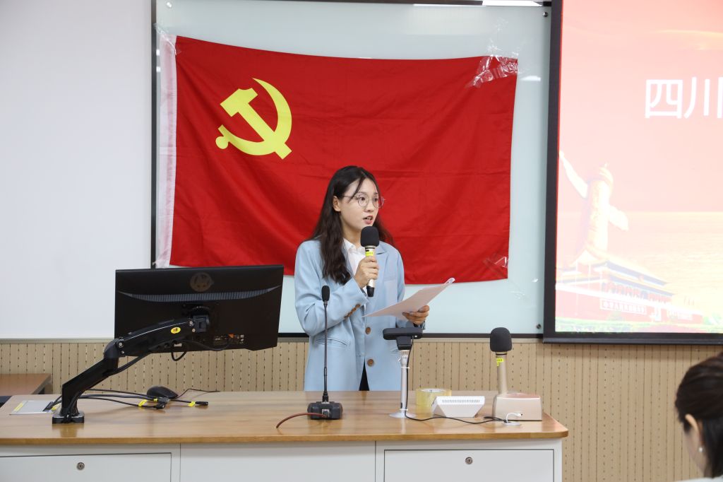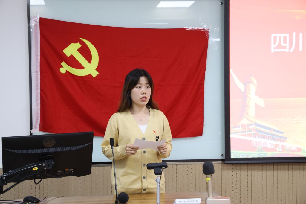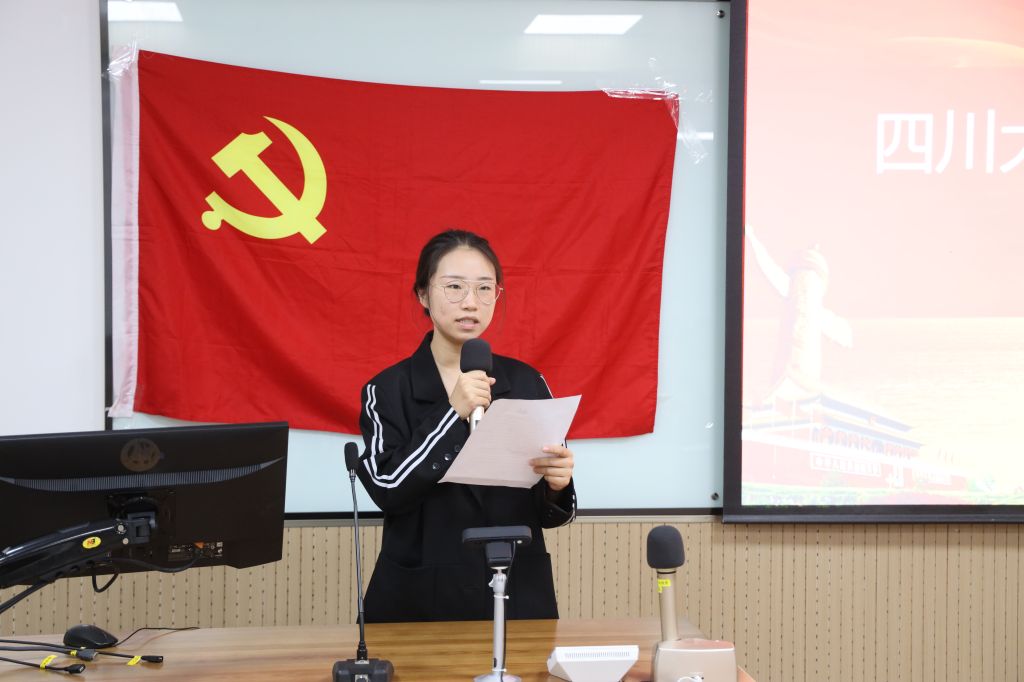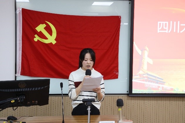 大会在庄严的国歌声中拉开序幕。学院教师党员陈红老师带领大家一起学习了《习近平在纪念辛亥革命110周年大会上的讲话》,全体党员对讲话精神进行了全面细致的学习,学生党员王燕、廖曦结合领学内容分享了自己的学习感受。