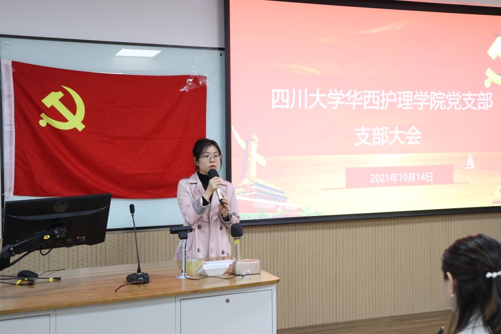 李卡书记宣读了关于7名预备党员转为正式党员的支部决议,对7位同志按期转正表示祝贺,希望他们以此为契机,进一步加强学习,充分发挥共产党员的模范带头作用,认真贯彻习近平总书记在纪念辛亥革命110周年大会上发表的重要讲话精神,为护理学院发展做出自己的贡献。