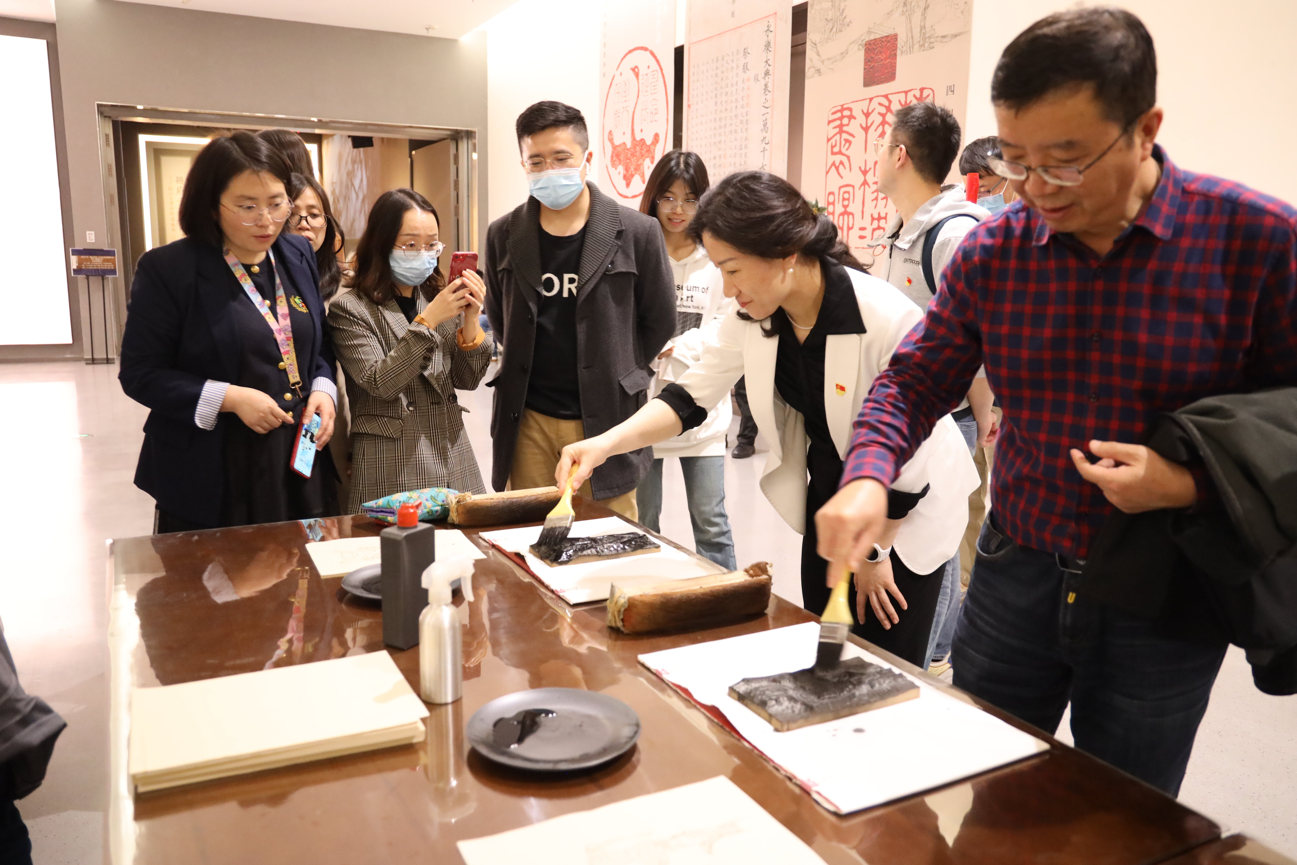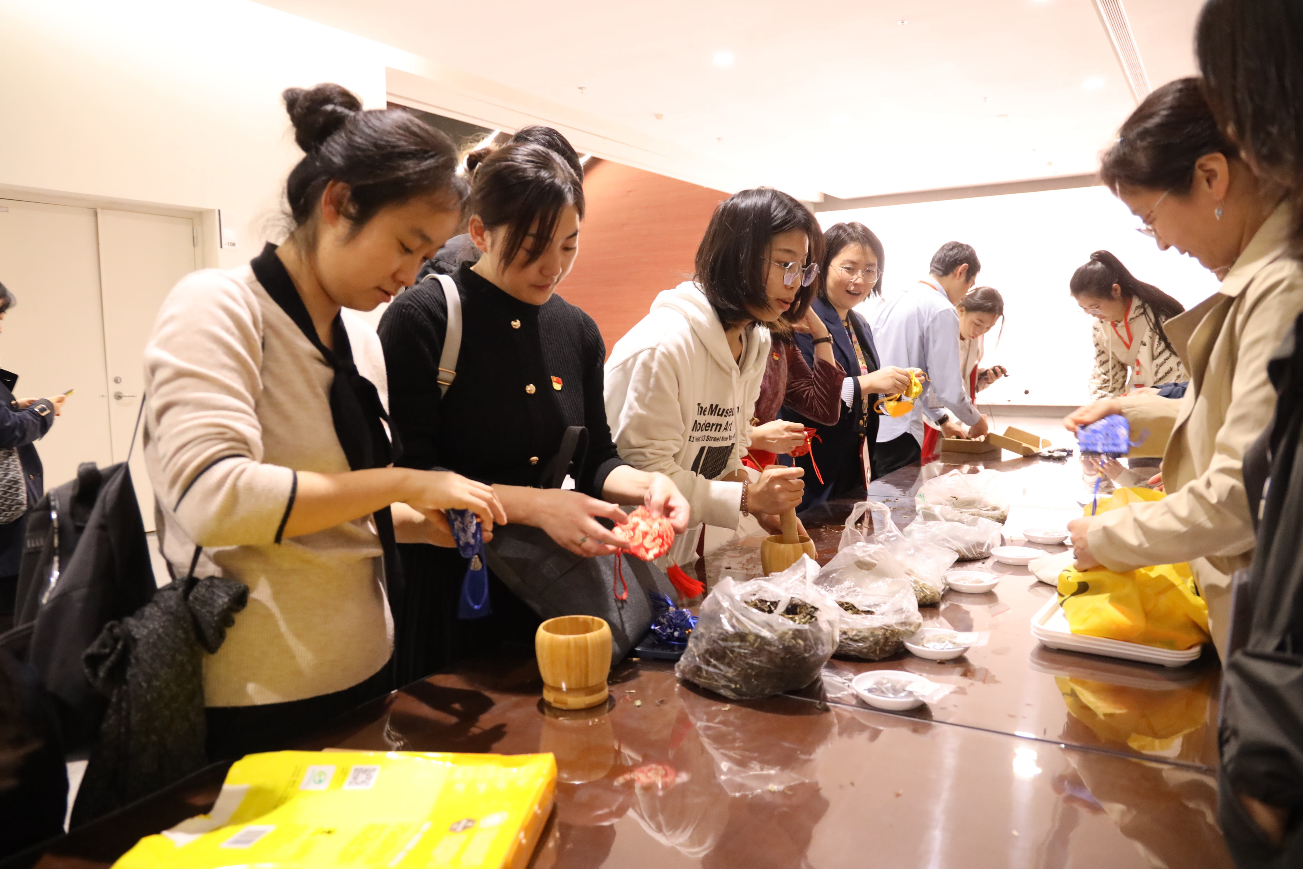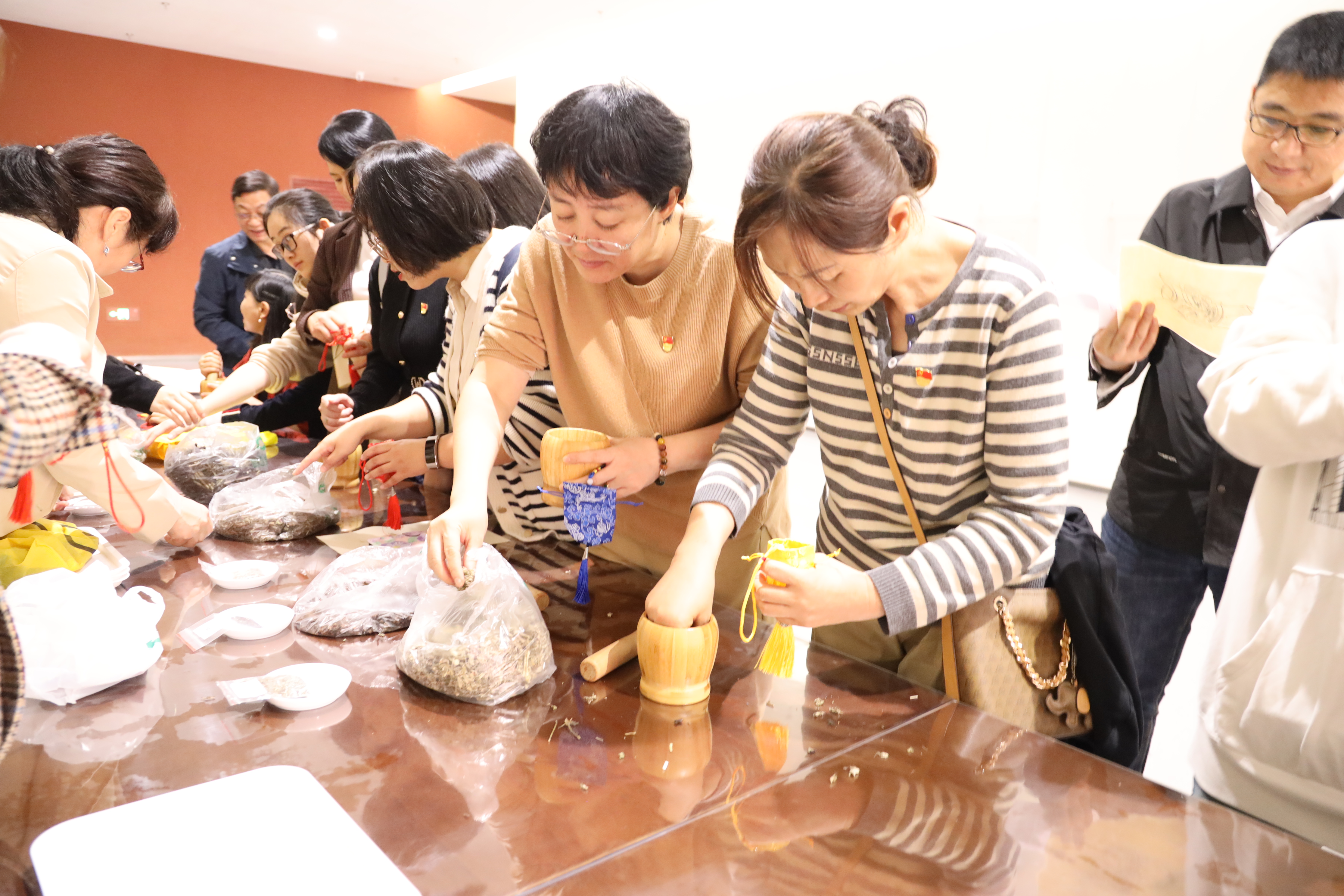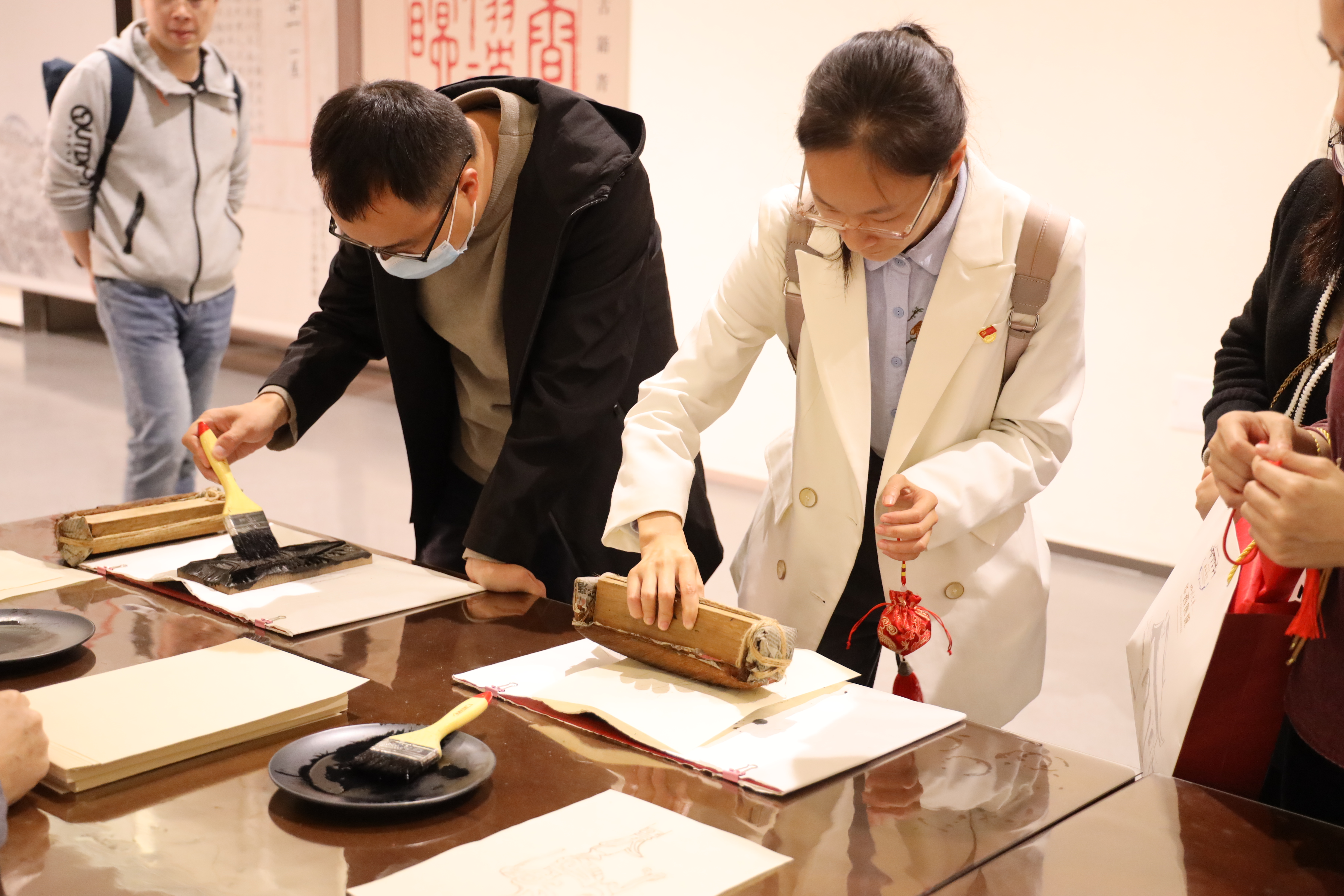 在研学博览区,党员同志们参加了“册府千华”主题研学体验活动,在金年会诚信信誉至上图书馆老师的带领下,现场体验古人专属的印刷技艺,收藏纸韧墨香;以杆秤称重,石臼研磨,将丁香、紫苏、薄荷、艾草等天然香料古法制作成精美的流苏香囊,深度体验了传统文化的内涵与魅力。