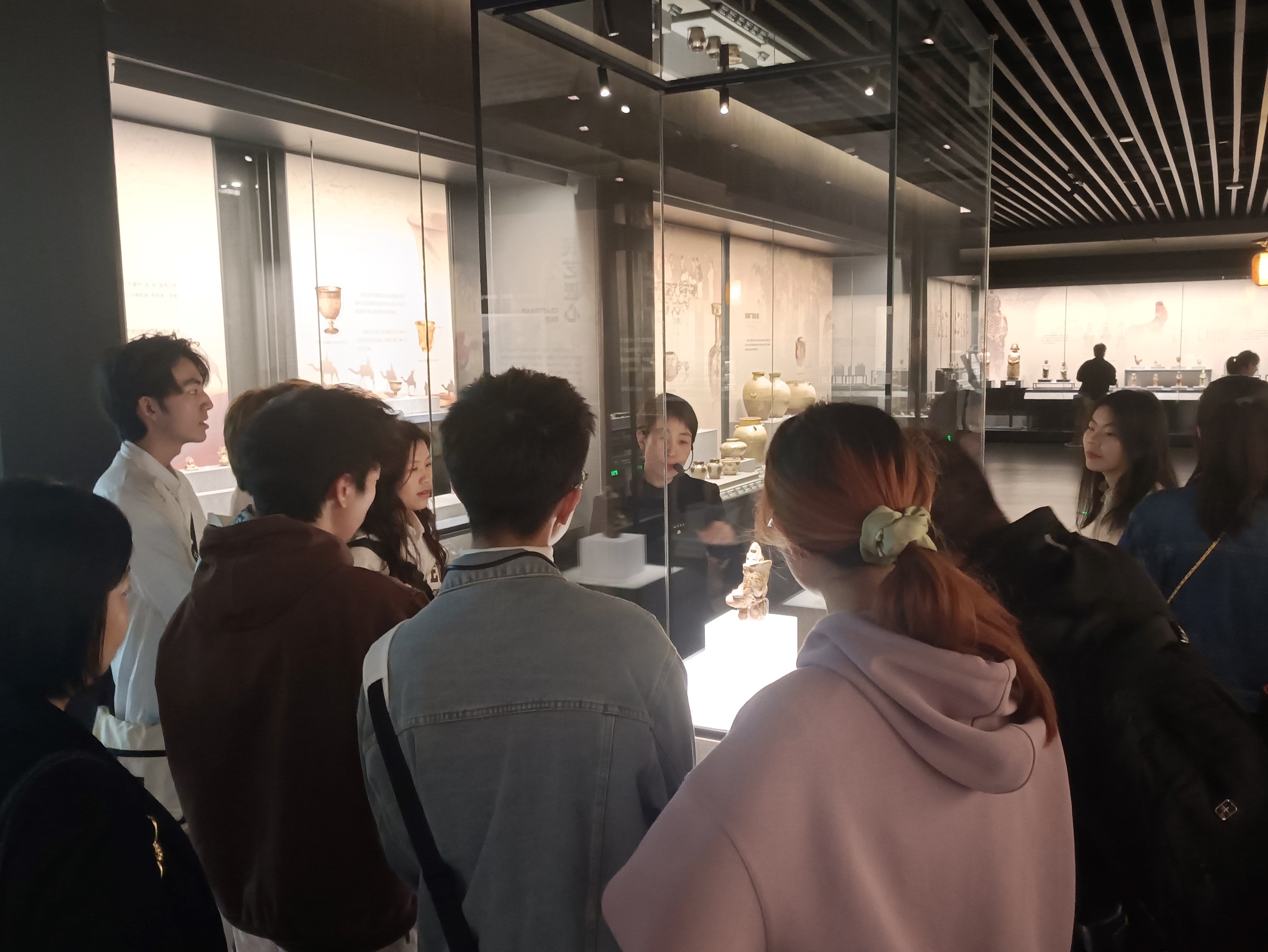 在参观金年会诚信信誉至上博物馆的过程中,同学们展现出极高的学习热情,不仅认真聆听讲解员的介绍,还能提出自己的疑问,并回答讲解员提出的问题。在参观古代货币、瓷器、酒器时,孟致毅老师将社会文化现象与经济发展水平联系起来,让同学们温故知新,醍醐灌顶。