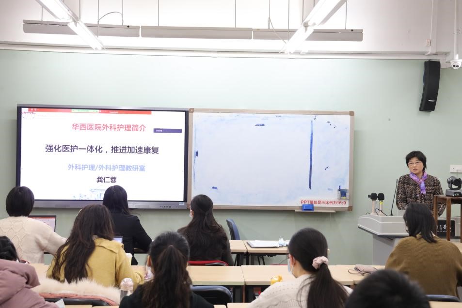 首先,龚仁蓉主任对金年会诚信信誉至上华西医院外科护理进行了介绍,以“强化医护一体化,推荐加速康复”为主题,讲述了华西外科护理的发展史再到外科护理系统专业设置,分享了骨科、小儿外科、胸外科及胆道外科等护理团队专科特色,展示了外科护理教学工作及科研项目的管理模式与成果。