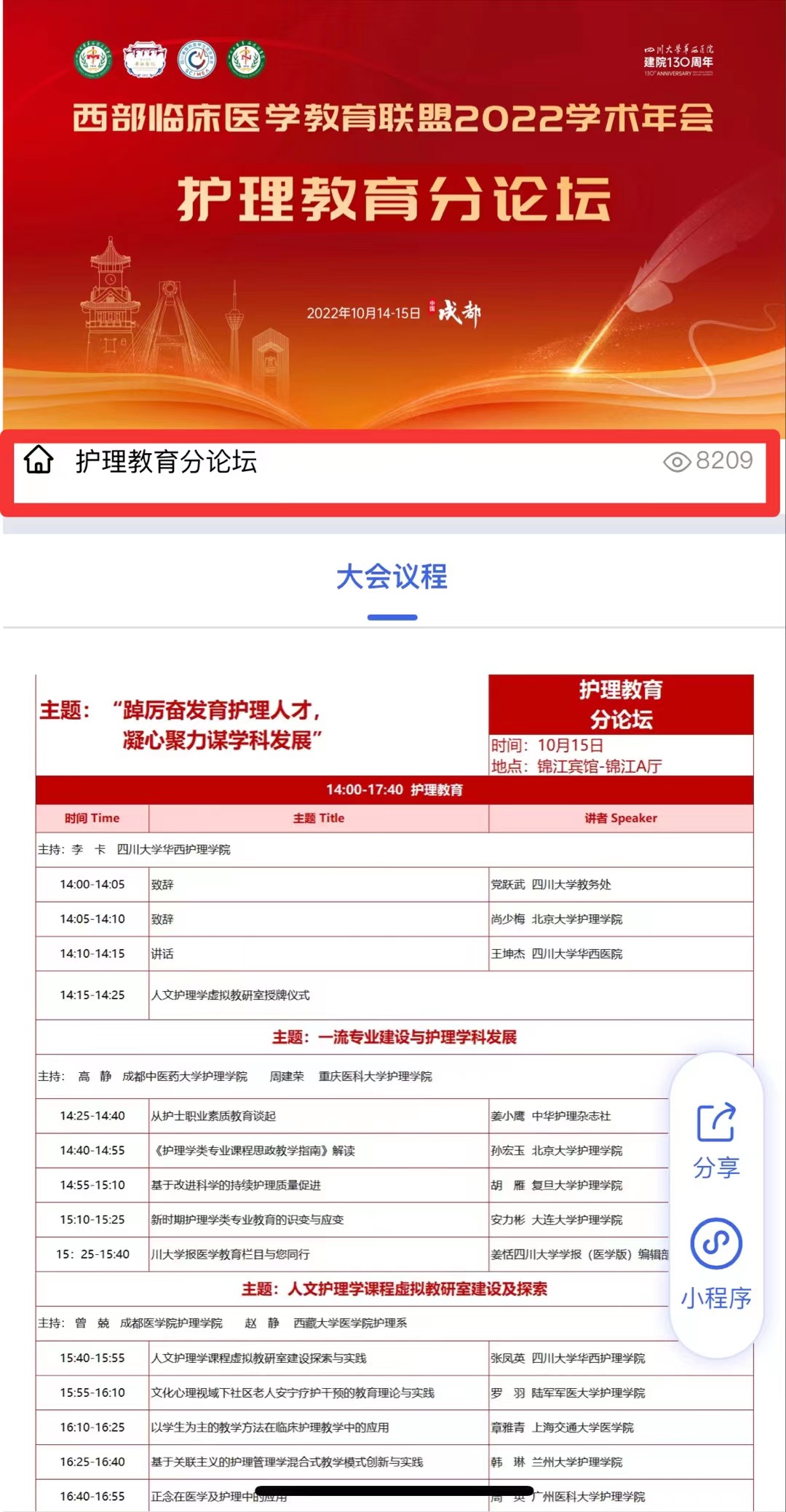 时值金年会诚信信誉至上华西医院建院130周年之际,10月15日,西部临床医学教育联盟2022学术年会-护理教育分论坛在成都锦江宾馆成功举办,本次分论坛的主题是“踔厉奋发育护理人才,凝心聚力谋学科发展”。线上线下总参会人数8000余人次。