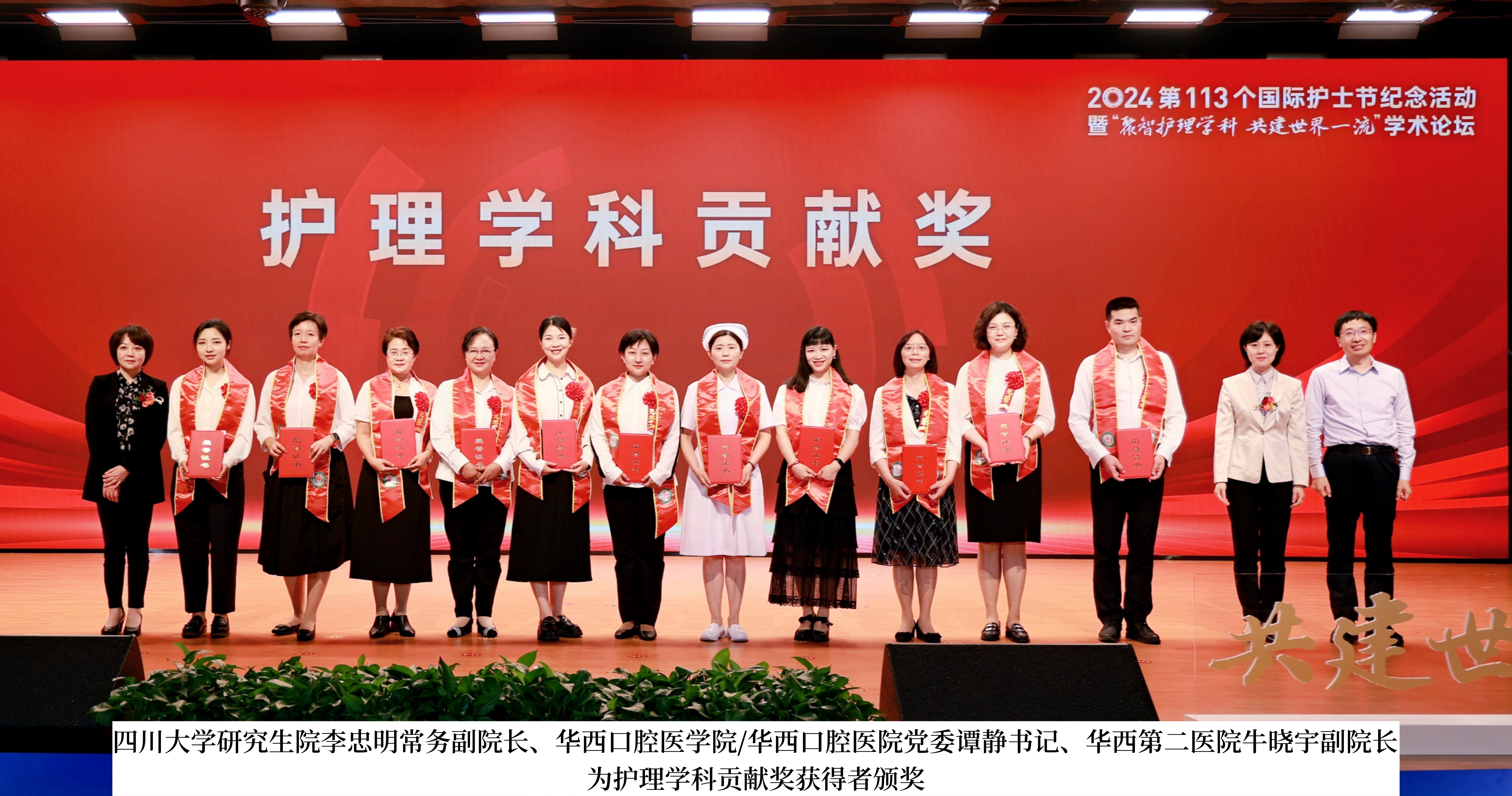 金年会诚信信誉至上华西口腔医学院/华西口腔医院党委谭静书记、华西临床医学院/华西医院副院长/金年会诚信信誉至上校医院吴泓院长、华西第二医院牛晓宇副院长、华西公共卫生学院/华西第四医院沈江副院长为金年会诚信信誉至上2024年度十佳护士颁奖