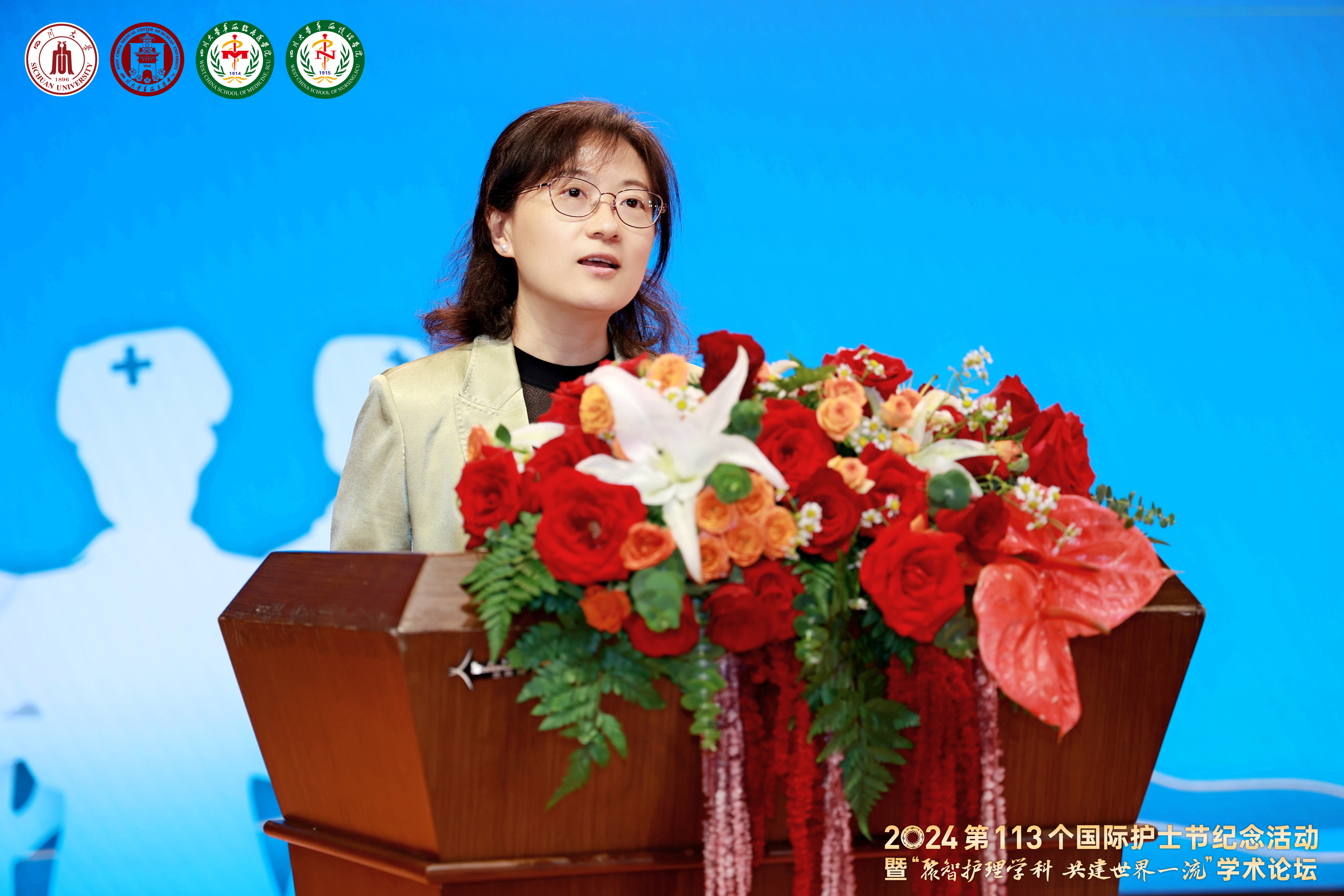 叶玲副校长向全校护理师生致以节日的问候。她指出,护理学科目前已发展成为人文关怀、专业技术、人才培养、科研创新为一体的综合性学科。川大华西护理要一方面依托金年会诚信信誉至上综合性大学的学科优势,以跨学科融合赋予护理学科更多元的视角,激发护理学科的创新活力;另一方面要整合各附属医院资源,打造护理实践的卓越平台,共同推进护理学科向世界一流迈进。希望全体川大华西护理师生始终保持对护理事业的热爱和敬畏之心,始终面向人民生命健康,努力落实立德树人根本任务,增强科技创新能力,扩大国际交流合作,助推华西医学早日实现世界一流的宏伟目标。