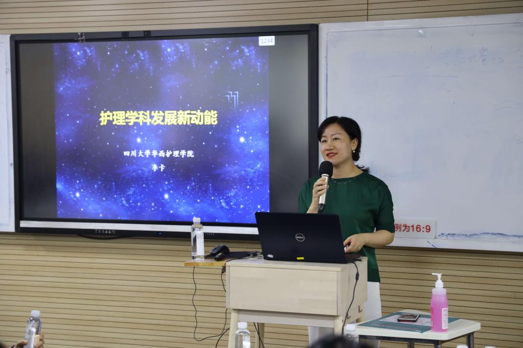 护理学院执行院长李卡教授热烈欢迎新同学的到来。她以《护理学科发展新动能》为题,与同学们从大护理时代下的学科体系格局、护理学科的科研体系建设、适应大健康时代的护理学科人才布局、未来护理学科发展等方面共同展望了护理学科的发展新模态,并对研究生的学业提出要求,强调研究生应该成为具有忠诚执着、追求真理、攻坚破难、朴实奉献特质的护理研究重要人才,希望同学们能刻苦钻研、敢为人先,共同推动中国护理学科再上台阶。
