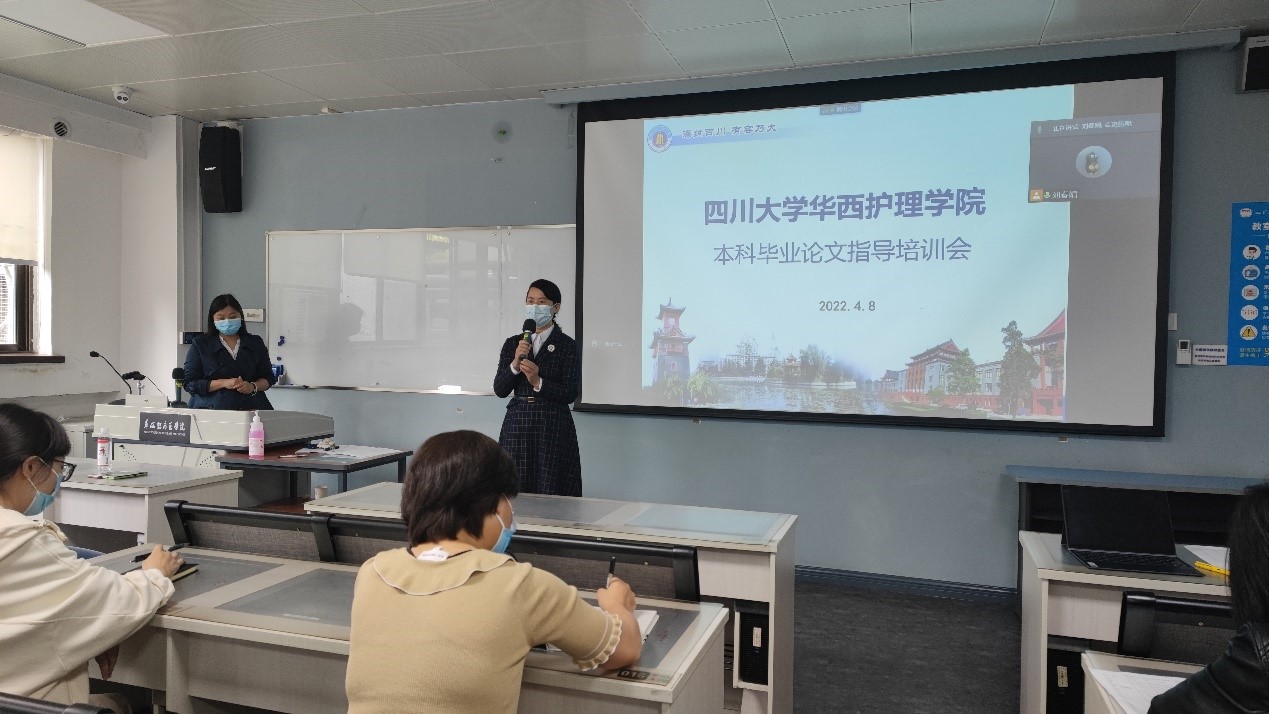 妇产科护理学教研室主任任建华副教授分享了本科生毕业论文撰写与指导要点,任老师首先强调了本科生毕业论文指导与撰写是实现人才培养目标的重要教学环节,培养学生去探求真理,强化学生的社会意识,指导学生进行基本科学研究基本训练,提高学生的实践能力和综合素质。随后,任老师从毕业论文指导的基本教学要求,毕业论文(设计)的类型要求,毕业论文(设计)指导老师要求/职责以及评分标准进行了详细的解读与阐述,最后,任老师结合实际案例就毕业论文写作与指导技巧进行了分享。接着,华西护理创新研究中心王贯副研究员结合论文撰写的过程一一向同学和指导老师分享了写作的要点以及剖析了撰写过程中的常见问题,生动形象地分享了毕业论文撰写技巧,此外,王老师还以自身论文撰写案例向指导老师们分享了如何高效的指导修改毕业论文。两位老师的精彩分享赢得了与会老师和学生的一致好评,纷纷表示受益匪浅。