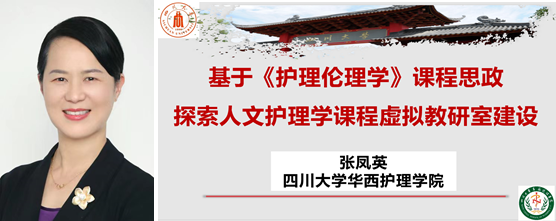 张凤英老师介绍了基于国家级一流课程《护理伦理学》建设教育部首批虚拟教研室建设试点 “人文护理学课程虚拟教研室”,分享人文护理学课程虚拟教研室在建设目标、主要内容、平台建设以及教研活动方面的经验,提出创新护理教研形态、加强教学研究、共建优质资源、开展教师培训、教研协作共享,共同推进护理教学改革,探索教学艺术,提高护理教学水平,主动应答新时代对护理人才培养的高要求和新挑战。