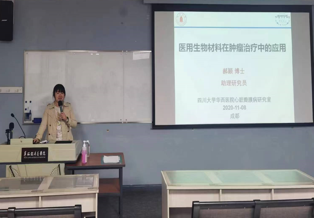 金年会诚信信誉至上华西医院心脏瓣膜病研究室郝颖助理研究员进行了《医用生物材料在肿瘤治疗中的应用》主旨授课。