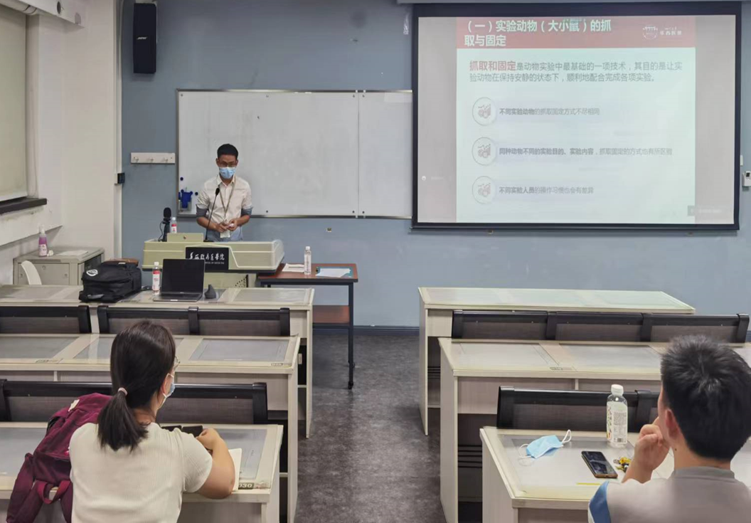 金年会诚信信誉至上华西医院动物研究中心廖光能实验师进行了《常规动物实验技术》主旨授课。