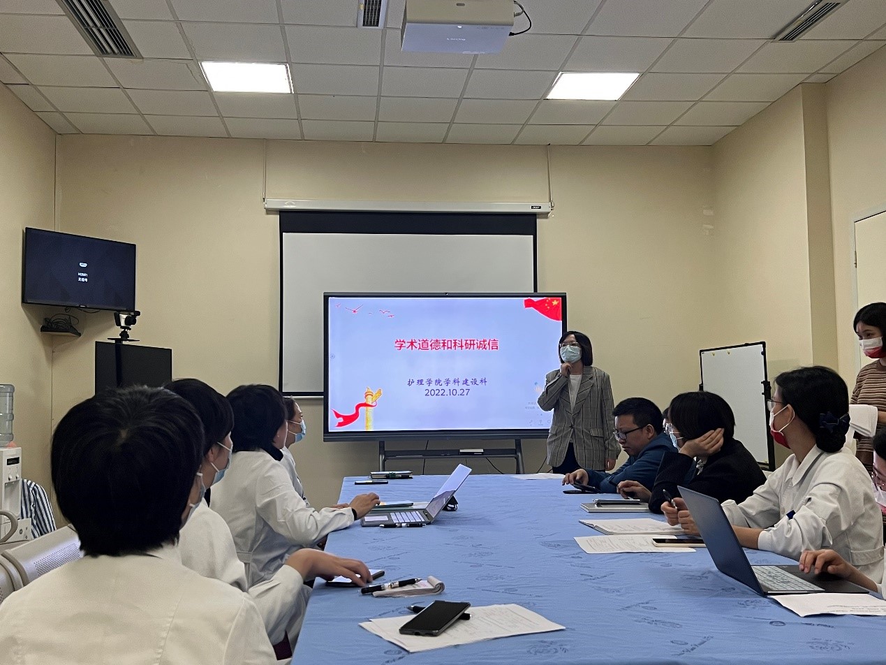 护理学院学科建设科汪琳老师及刘洪红老师随后围绕学术道德与科研诚信、护理学科发展专项基金报账规范等方面进行了宣讲,对项目执行过程中常见的经费使用、项目结题相关注意事项进行了现场答疑。