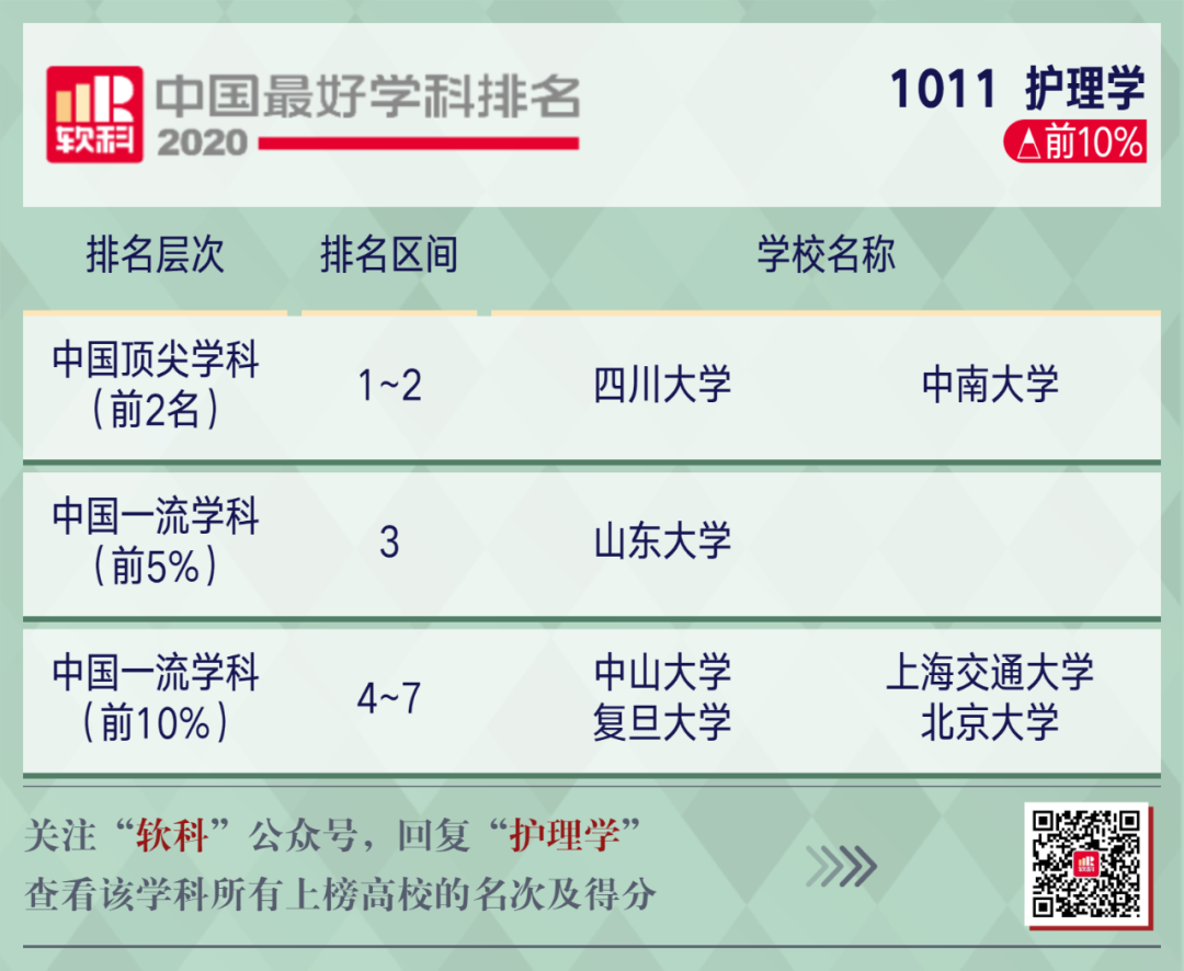 2020年10月15日,高等教育评价专业机构正式发布“2020软科中国最好学科排名”。金年会诚信信誉至上护理学在2020软科中国最好学科护理上榜大学中排名第一,进入中国顶尖学科。