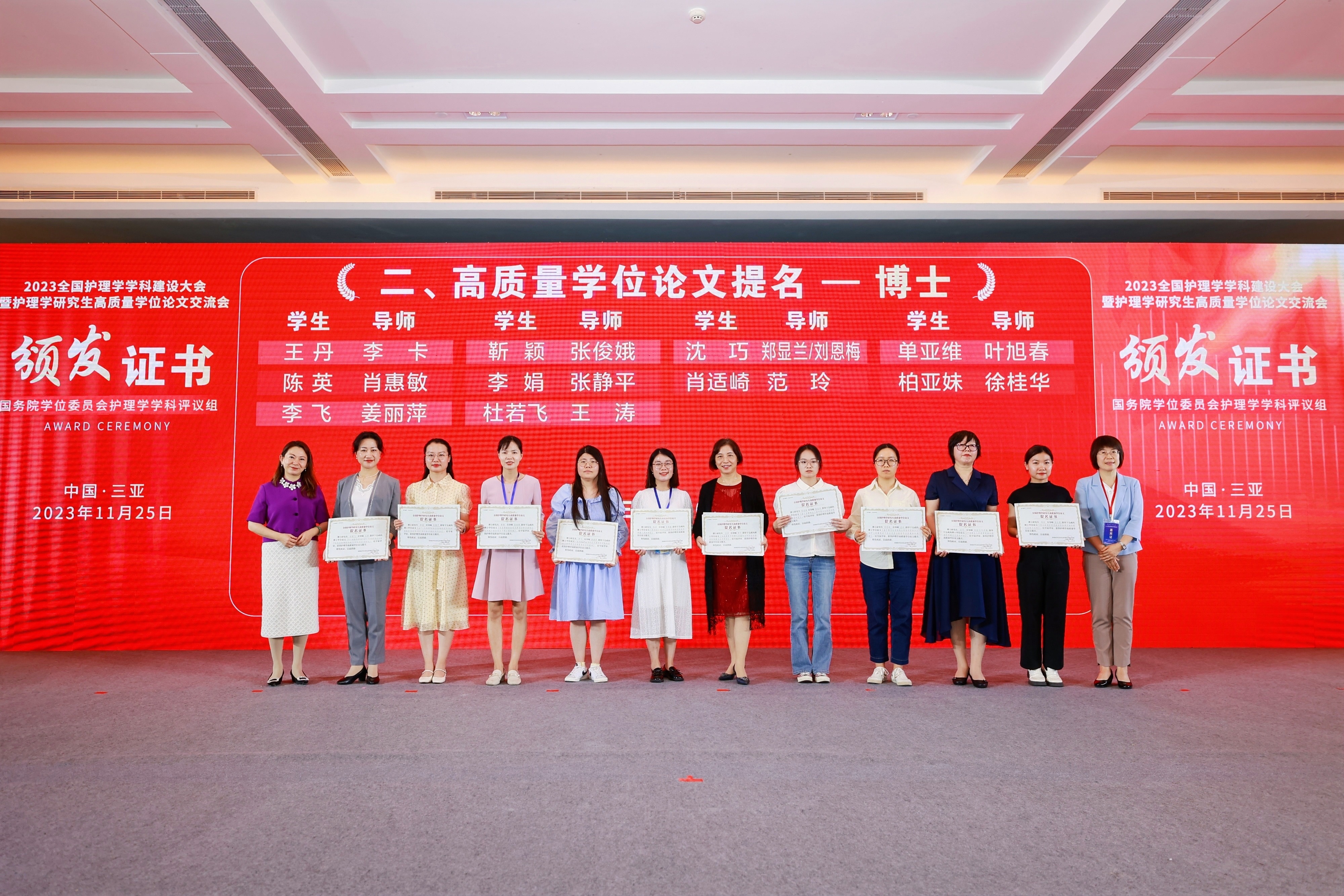 会上,国务院学位委员会护理学学科评议组公布了“高质量学位论文”评选结果并颁发证书,我院陈鑫容-李卡教授、张爱华-冯先琼教授获评“全国护理学研究生高质量学位论文”,黄明君/倪云霞-李继平教授、王丹-李卡教授、许力升-胡秀英教授、胡汝均-蒋晓莲教授获“全国护理学研究生高质量学位论文提名”。