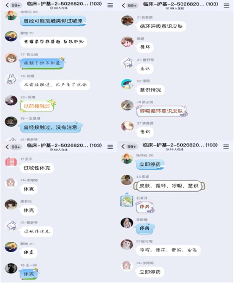 首先,程南生副院长关心指导了2018级护理本科生的专业核心课程,也是国家级精品课程《护理学基础》的在线教学。看着直播课堂中同学们通过听张凤英老师讲授、在线课堂讨论、临床护理案例分析等多种形式进行药物过敏试验的学习,同学们在老师引导下积极思考、踊跃发言,全程高度参与教学,真正实现了“学生忙起来、教师强起来、管理严起来、效果实起来”。