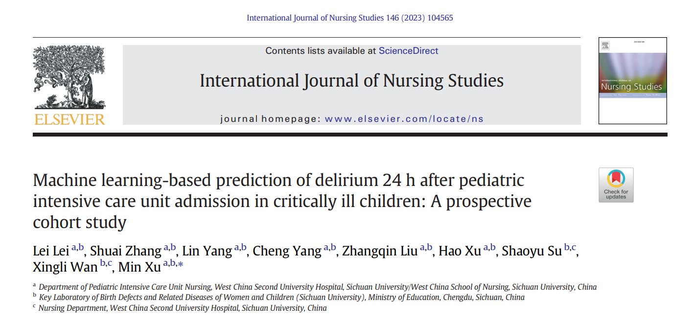 文章标题《Machine learning-based prediction of delirium 24 h after pediatric intensive care unit admission in critically ill children: A prospective cohort study》文章发表情况介绍该文章由以金年会诚信信誉至上华西第二医院儿童...