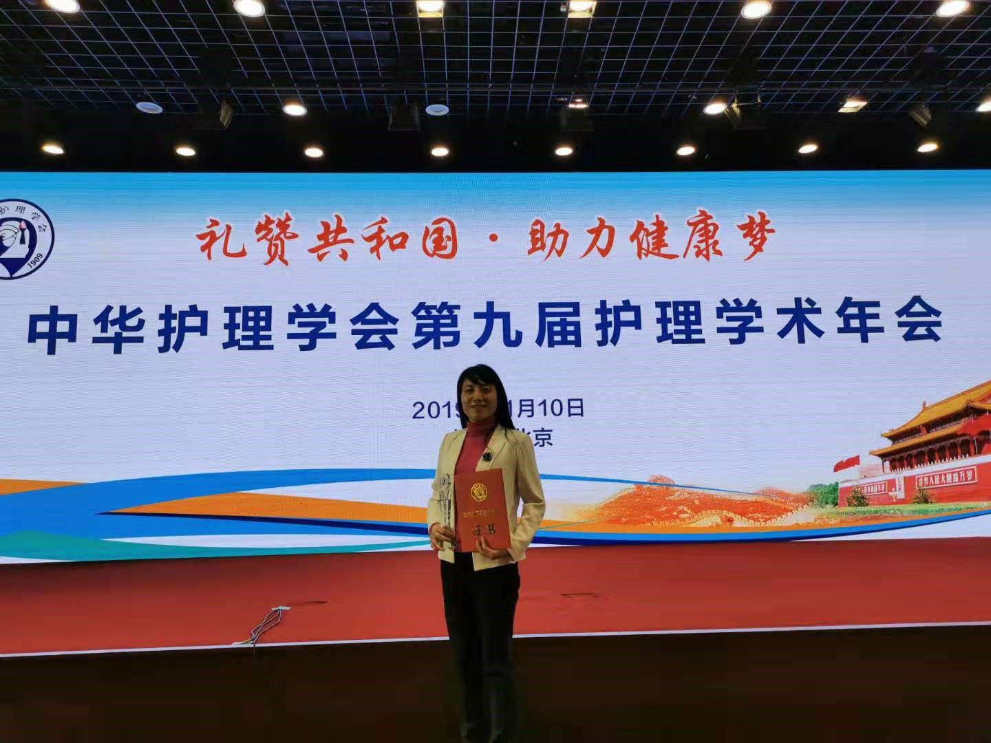 2019年11月10日以“礼赞共和国·助力健康梦”为主题的中华护理学会学术年会暨第六届中国护理学会科技奖颁奖大会在北京国际会议中心隆重举行。来自全国千余名护理工作者参加了本次盛会。我院博士生导师罗碧如教授主持研究的课题《基...