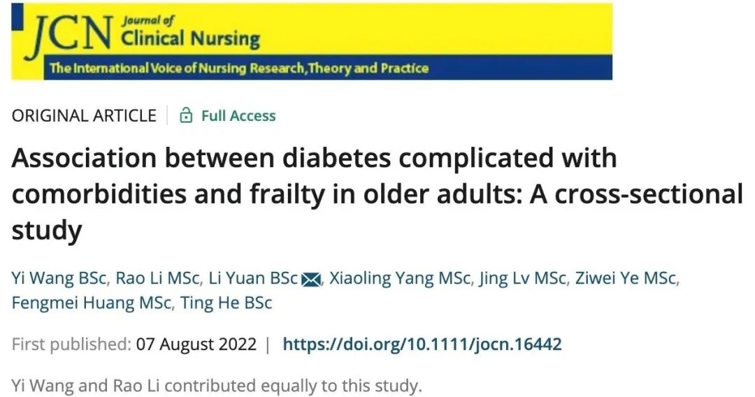 文章标题老年糖尿病共病与衰弱之间的关系:一项横断面研究《Association between diabetes complicated with comorbidities and frailty in older adults: A cross-sectional study》文章发表情况介绍该文章由金年会jinnianhuicom...
