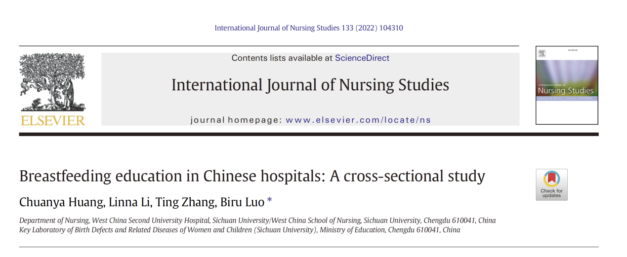文章标题《中国医院母乳喂养健康教育:一项横断面研究》《BreastfeedingeducationinChinesehospitals:Across-sectionalstudy》文章发表情况介绍该文章由金年会jinnianhuicom2020级博士生黄川雅为第一作者,金年会jinnianhuicom/...