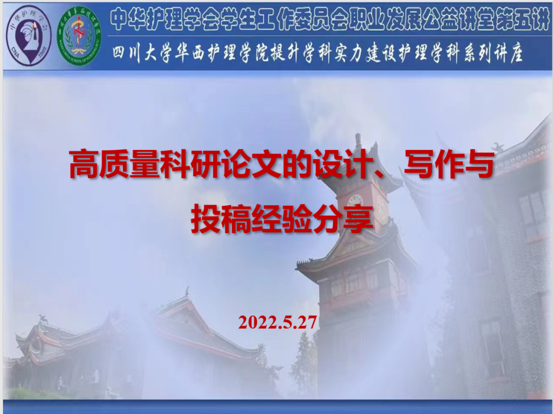 2022年5月27日,中华护理学会学生工作委员会职业发展公益讲堂第五讲暨金年会jinnianhuicom提升学科实力 建设护理学科系列讲座在我院顺利举行,本次讲座的主题为“高质量科研论文的设计、写作与投稿经验分享”。中华护理学会学生...